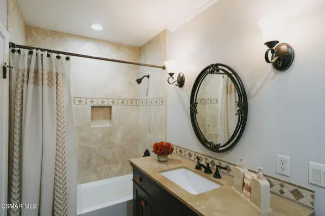 Located in the heart of the highly desirable Conejo Oaks neighborhood, this beautifully crafted single-story residence combines timeless elegance with modern comfort. Situated on a quiet cul-de-sac, this 4-bedroom, 3-bath home showcases quality craftsmanship, open living spaces, and a true sense of California indoor-outdoor living.Step inside to a spacious open-concept kitchen featuring fresh interior paint, custom cabinetry, stone countertops, and designer finishes throughout. The home’s inviting interiors include hardwood flooring, ceramic/stone tile, and a travertine fireplace that creates a warm focal point in the main living area. Crown molding, plantation shutters, and custom detailing add sophistication to every room.The backyard is expansive and private, offering ample room for a pool, entertaining, and enjoying the sunshine. Enjoy a lush garden atmosphere with numerous fruit trees, including lemon, lime, fig, avocado, blood orange, and more. The front yard provides RV access and extra parking, adding both convenience and flexibility.Located within the award-winning Conejo Valley Unified School District, this home provides access to top-rated schools, parks, shopping, dining, and all the amenities Thousand Oaks has to offer.