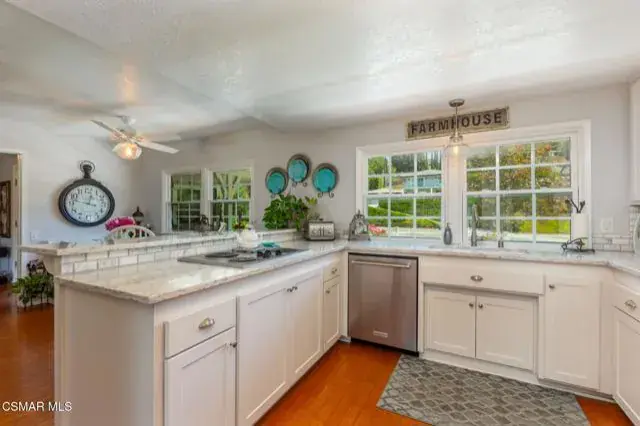 Welcome to this spectacular single level plan C model, in the coveted Kevington neighborhood of Thousand Oaks. This home offers, 4 bedrooms, 2.5 bathrooms, approx. 2,515 sq. ft of living space and situated on approx. 16,552 sq. ft lot with views. Great spacious floorplan offering remodeled chef’s kitchen with adjacent eating area and breakfast bar.Large living room, separate dining room, huge family room with brick fireplace, wood mantle and a highlighted picture window looking out to the backyard. Some of the upgrades include, York HVAC system, smooth ceilings. Concrete tile roof, dual pane windows & interior/exterior paint completed in 2020. All 4 bedrooms are at the far wing of the home. The large lot has tons of possibilities. Backyard offers large concrete patio with covered porch perfect for entertaining. Two car garage with direct access. Excellent central location within close proximity to top rated schools, parks, shopping, restaurants and hiking trails.