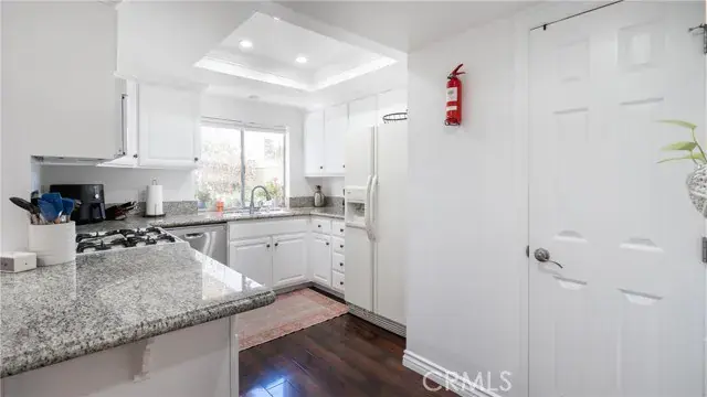 Experience the epitome of comfort and style in this immaculate, upgraded two-story townhome. Boasting 3 bedrooms, 2.5 bathrooms, open living space, and a plethora of stylish finishes. As you step inside, you’ll be greeted by beautiful hardwood, complemented by fresh paint that breathes life into every room. The heart of the home beckons you to host gatherings in the inviting living room or open flow dine in kitchen which seamlessly flow to a private patio—a perfect place for outdoor enjoyment. The master bedroom is a sanctuary of comfort, complete with an remodeled shower over tub, and walk in closet. Two additional bedrooms and a upgraded second bathroom ensure ample space for family and guests. An additional half bath downstairs and laundry closet off the dine in kitchen complete this move in ready home. Nestled within the coveted Los Robles community, this home graces a desirable street, showcasing pristine curb appeal and a well-maintained neighborhood ambiance. Life here is convenient, with the added perks of your own garage and an assigned parking spot and covered carport. Located in a prime area, you’ll relish the proximity to freeways a well as great shops and restaurants just minutes away.