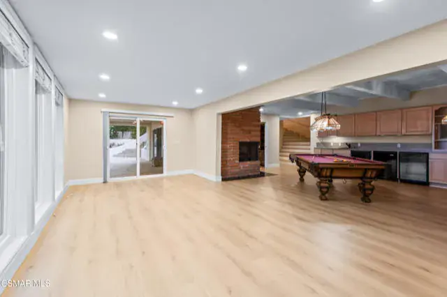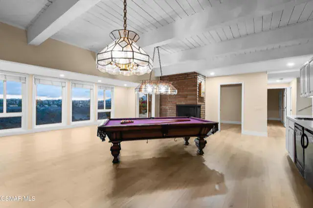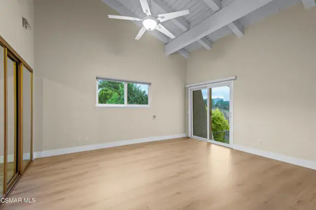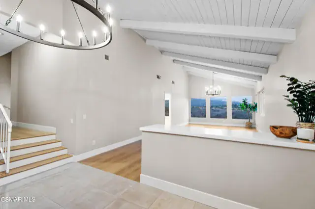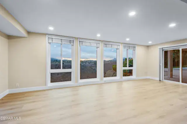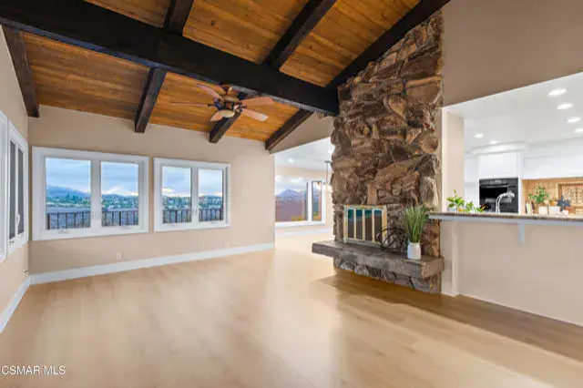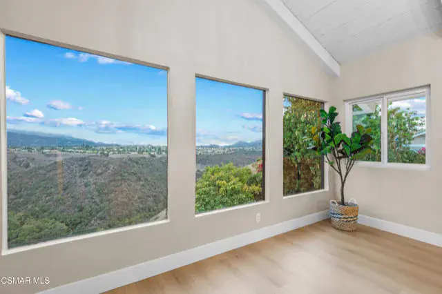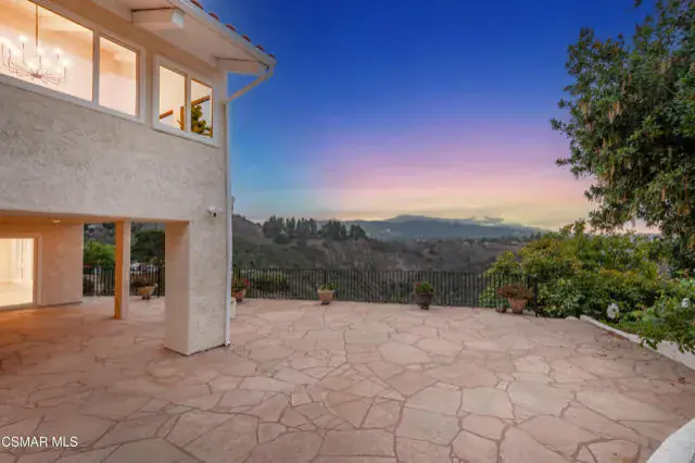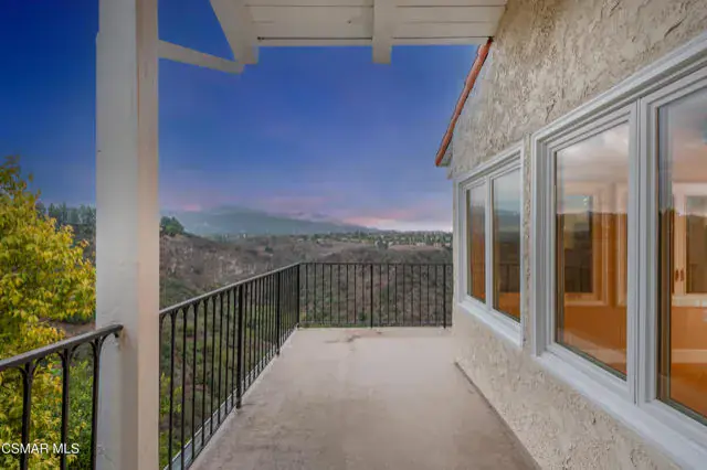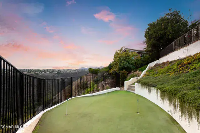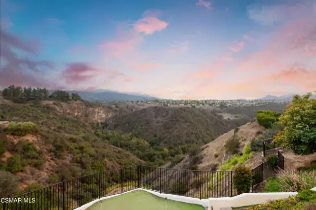 Ultimate Thousand Oaks View Estate ideally located at the end of a serene cul-de-sac in the heart of the Conejo Valley. This extraordinary Mediterranean retreat offers panoramic views of the Barranca and the Santa Monica Mountains, and it’s surrounded by the scenic hiking trails of Wildwood. This approximately 4,000 sq. ft. estate features 4 bedrooms plus an office and 3 1/2 bathrooms. Step inside and be immediately greeted by vaulted beamed ceilings and walls of windows that frame dramatic views from nearly every room. The spacious living area is highlighted by a striking floor-to-ceiling rock fireplace, creating a warm focal point for gathering. The open concept floor plan flows seamlessly into the dining and entertaining spaces, with natural light pouring in from every angle. On the lower level there’s a massive bonus/game room with its own breathtaking views, a perfect entertainment hub. The outdoor living has expansive jet lined views with patios, fire pit, professional landscaping, and a private putting green, all designed to maximize the home’s hillside setting. This is a very special offering, a rare opportunity to own one of the most view-centric homes in Thousand Oaks, blending privacy, space, and unmatched access to nature in a way that is seldom available.