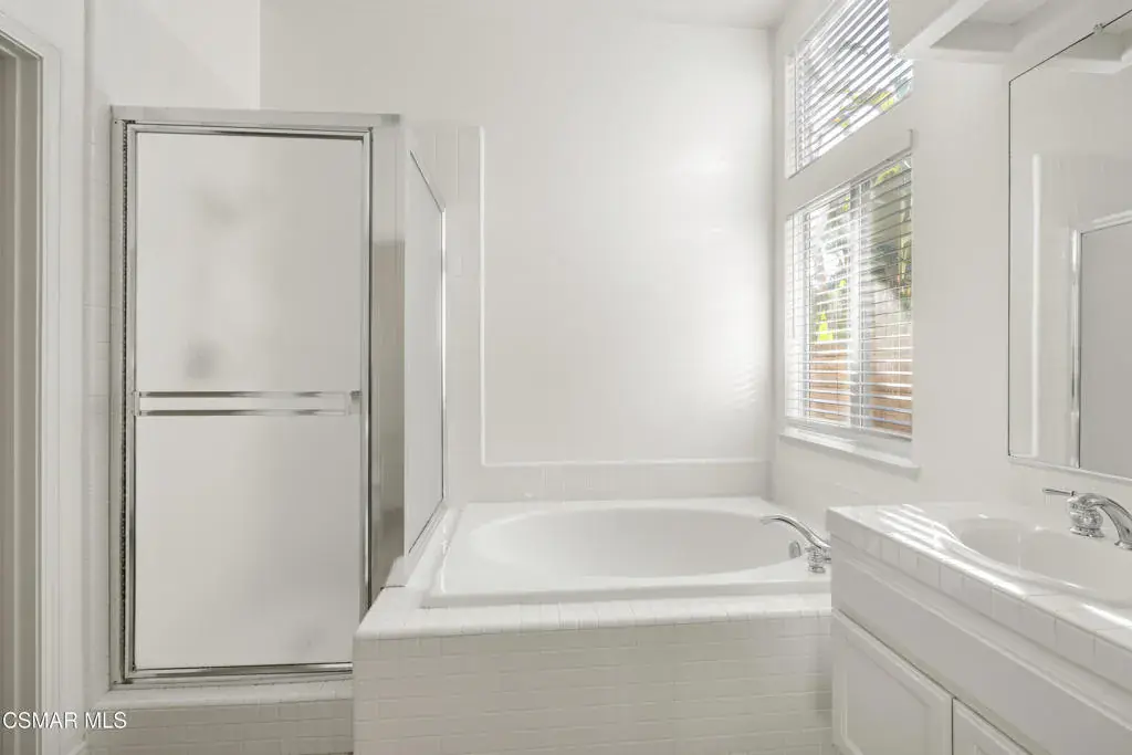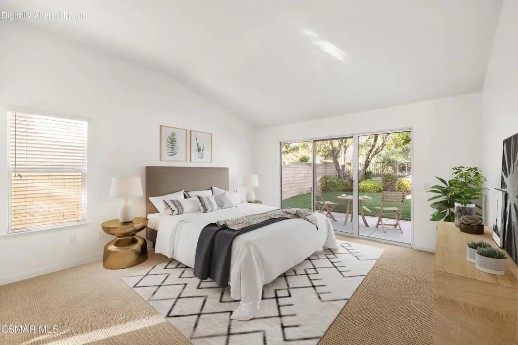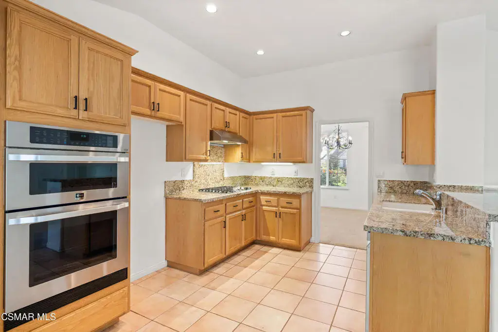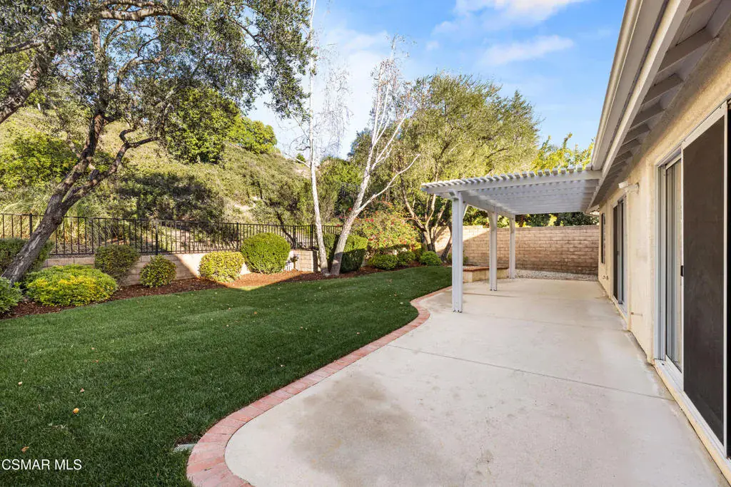 Welcome home to this immaculate 3 bedroom, 2 bath, single level home located in the very desirable Lang Ranch/Meadow Wood neighborhood of Thousand Oaks. Tall ceilings and recessed lighting throughout. NEW paint inside and NEW sod outside. NEWER air conditioning condenser and carpeting. The upgraded kitchen with plenty of storage has granite counters and NEWER stainless appliances: 5-burner gas cooktop, oven, microwave, dishwasher, trash compactor, and range hood. The kitchen, adjoining breakfast area and living room have a great flow for that open concept feeling. The living room has a 2-sided fireplace that it shares with the dining room. A generous sized primary bedroom features a large walk in closet. A slider in the primary bedroom beckons you to the trellised patio and private backyard. What a great space to begin the day with a cup of coffee or relax after a long day with a glass of wine. In the primary bathroom there’s a jetted soaking tub, a separate glass enclosed shower with tiled counters and dual sinks. There’s also an additional full bath and 2 more bedrooms . The indoor laundry room has plenty of storage. Enjoy lots of privacy since the home backs to a low maintenance hillside that does not require yearly brush abatement. No HOA! The very desirable and award winning Lang Ranch Elementary is just down the street. Close to shopping, dining and hiking. Move in and live!