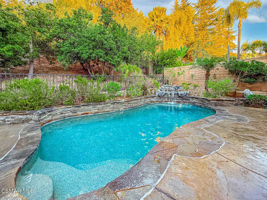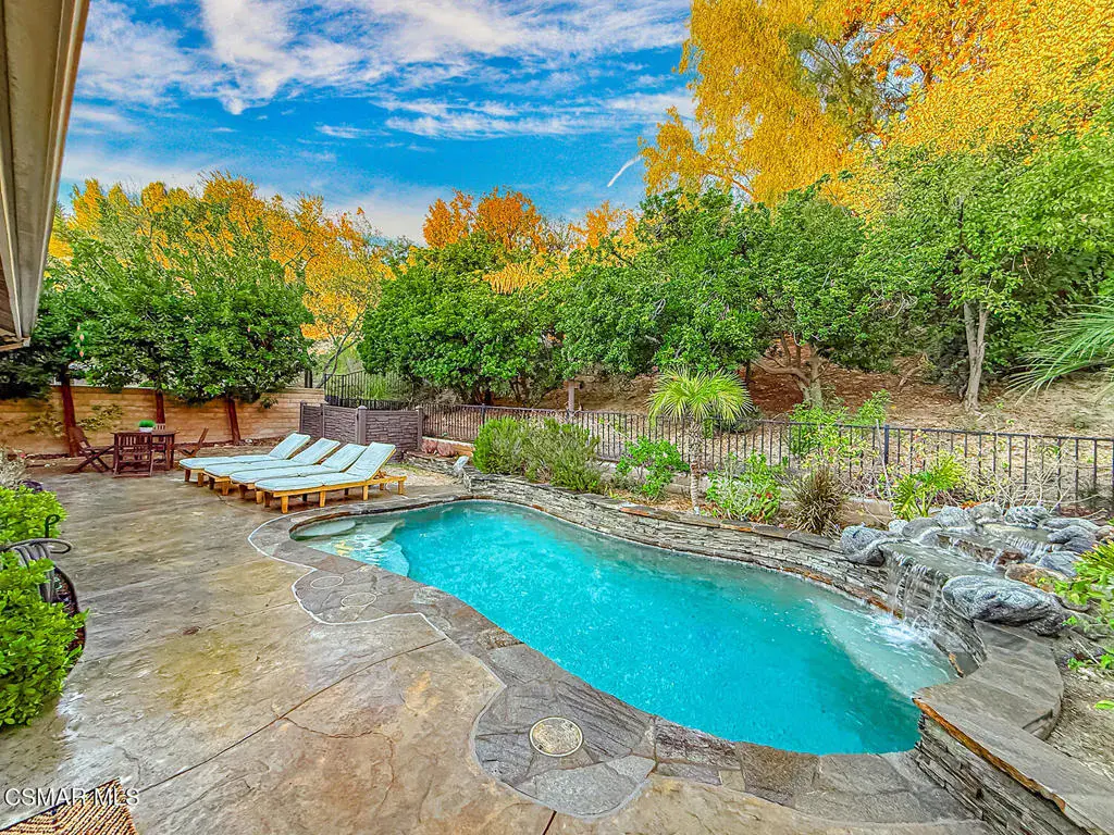 WELCOME HOME! A truly special property in Lang Ranch, this SINGLE-STORY 4-bed, 2-bath home is set on an elevated view lot and located in one of the area’s most desirable neighborhoods with NO-HOA! Enjoy the perfect blend of privacy, location, and value in a beautiful community close to top-rated schools, parks, and scenic trails. Step inside to formal living and dining rooms offering vaulted ceilings and REAL wood floors. Both the family room and kitchen overlook a stunning, private backyard where a POOL, SPA, and soothing waterfall create a true resort-style retreat. The Primary Bedroom features sliding doors to the backyard, offering peaceful views and the calming sound of flowing water. The updated primary bathroom includes a stall shower, sunken tub, and an expansive walk-in closet. Three additional bedrooms and an updated full guest bathroom provide comfortable accommodations for family or guests. Lovingly maintained with mature landscaping, the home backs to open space, offers abundant natural light, and delivers exceptional privacy. Ideally located to highly sought-after Lang Ranch Elementary School. Come see why this home stands out!