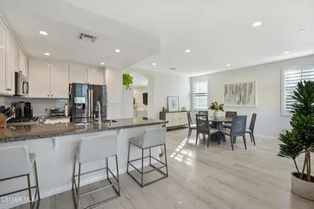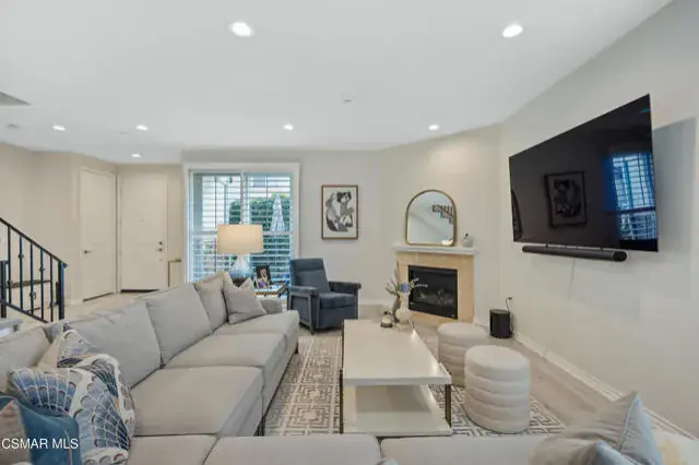 Welcome to 349 Newbury Vista Lane, Newbury Park — a stunning end-unit townhome that perfectly blends modern comfort, privacy, and style. Built in 2017, this spacious 3-bedroom, 2.5-bathroom residence offers approximately 2,200 square feet of beautifully designed living space in one of the Conejo Valley’s most desirable communities.As you step inside, you’re greeted by a bright and open floor plan with high ceilings, recessed lighting, and plantation shutters throughout. The main level features a large, inviting living room centered around a cozy fireplace–ideal for entertaining or relaxing evenings at home. A custom built-in cabinet with a wine refrigerator and countertop adds an elegant touch, perfect for hosting guests or enjoying a quiet night in.The kitchen features granite countertops, subway tile backsplash, stainless steel appliances including a built-in microwave and sink, and counter bar seating area. The layout flows seamlessly into a large dining area–currently arranged as a formal dining space but originally designed to accommodate both a family room and a breakfast area. This flexible design allows you to tailor the space to your lifestyle and needs.Upstairs, the expansive primary suite is a true retreat. It features two walk-in closets, a private balcony and a luxurious en suite bathroom complete with dual sinks, a large shower, and soaking tub. Recent updates throughout all bathrooms give the home a fresh, designer-inspired feel. Two additional upstairs bedrooms share a beautifully remodeled full hall bathroom, perfect for family, guests, or a home office.Additional highlights include a main-level half bathroom, a convenient laundry room with storage, a tankless water heater, a whole-house water filtration system, and plenty of built-in storage in the attached two-car garage with direct access. Smart home features like light controls and nest thermostat are also featured.The private outdoor patio–finished with stylish concrete pavers–offers a peaceful place to unwind, enjoy a morning coffee, or take in the beautiful Conejo Valley sunsets. As a rare end unit, the home enjoys additional privacy and natural light, with only one shared wall.The community itself offers resort-style amenities, including a sparkling pool and well-maintained grounds, creating a relaxed and welcoming environment. The location is ideal–nestled in the heart of Newbury Park near top-rated schools, parks, shopping, dining, and easy freeway access for a convenient commute.From its thoughtful layout to its high-end finishes and serene setting, this exceptional townhome truly has it all. Whether you’re seeking space, style, or a low-maintenance lifestyle, 349 Newbury Vista Lane offers the perfect blend of sophistication and comfort in one of Ventura County’s most desirable neighborhoods.Don’t miss this opportunity to own a move-in ready, beautifully upgraded home with every modern amenity and timeless appeal. Come experience the best of Newbury Park living today!