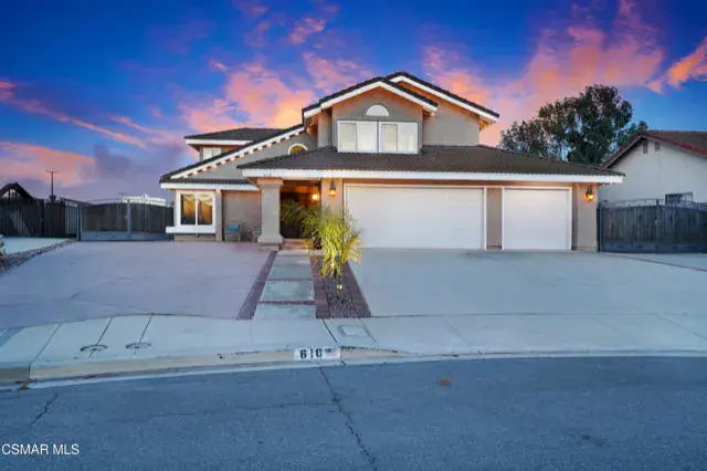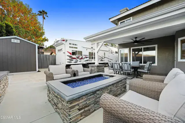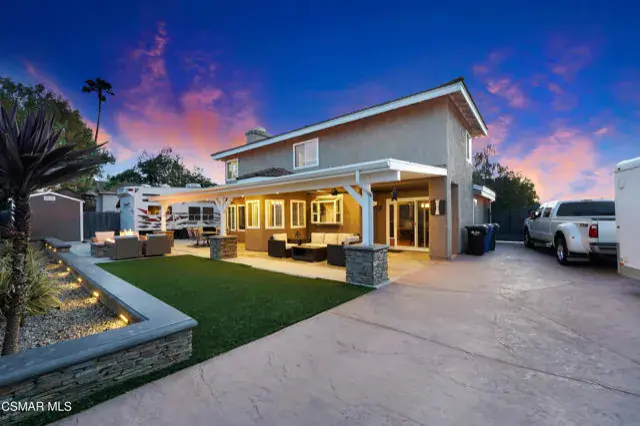 Welcome to 610 Nicole Drive in beautiful Newbury Park–a rare turnkey gem nestled in the sought-after Conejo Valley Unified School District with NO HOA and exceptional RV parking on both sides of the property.This stunning 2-story traditional home is fully remodeled with top-tier finishes and thoughtful design throughout. Enter through double doors to a bright, airy floor plan with soaring vaulted ceilings, large tile floors on the main level, and custom paintwork that elevates every space. The elegant custom staircase features new wood treads and iron balusters that set the tone for the home’s craftsmanship.The gourmet kitchen is a chef’s dream with granite countertops, rich dark cabinetry, stainless steel appliances, a center island with tray ceiling detail, mosaic tile backsplash, and an inviting breakfast nook with views to the beautifully designed backyard. The adjacent family room showcases a cozy gas log fireplace and recessed lighting, perfect for relaxing or entertaining.All bedrooms are located upstairs and feature wood-look luxury vinyl plank flooring, paneled closet doors, ceiling fans, and abundant natural light. The expansive primary suite is a true retreat with vaulted ceilings, double-door entry, and a spa-like ensuite featuring dual vanities, a jetted tub, custom tile shower with dual showerheads, and a tray ceiling.Step outside to a backyard oasis ideal for California living: enjoy the custom patio cover with plank ceiling, recessed lighting, masonry-wrapped columns, and built-in ceiling fan. The outdoor lounge area boasts a gorgeous glass rock fire feature, perfect for stargazing or entertaining. Low-maintenance artificial turf, professional hardscaping, lighting, drip irrigation, and dual 12’x67′ and 10’x60′ gated RV parking pads offer unmatched versatility.Additional upgrades include: dual-pane windows, newer HVAC system, indoor laundry room, epoxy-finished 3-car garage with WiFi openers, extensive storage, and a stamped concrete driveway. Conveniently located near hiking/biking trails, top-rated schools, and just minutes from the 101 freeway and local beaches.This remodeled, move-in ready home is the full package–don’t miss your opportunity to own this Newbury Park beauty with RV parking and more!