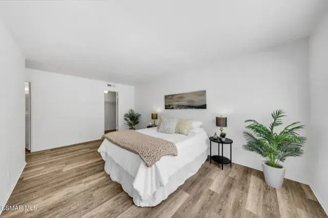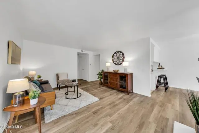 Welcome to this light and bright, single story, ground level, two bedroom, two bathroom home in a prime corner location at Oaknoll Villas, a 55+ owner-occupied, active senior community. This sparkling end unit has new luxury vinyl floors throughout, updated kitchen with quartz counter & bar, updated baths, new paint and steps away from the secret butterfly garden. The living room, filled with an abundance of light, has a fireplace and views to the lush patio area with mature plants, including 2 lemon trees and an orange hibiscus tree. From the living room, there is a separate dining area just off the kitchen. Down the hall, you have the secondary bedroom and bathroom with new quartz counter. At the end of the hall, there’s a primary bedroom suite with walk-in closet, updated bathroom with laundry closet, and a large window for plenty of natural light. Features include newer HVAC, newer refrigerator, new dishwasher, and stackable washer & dryer. Oaknoll Villas has wonderful community amenities including pool, spa, clubhouse, gym, billiard room, card room, shuffleboard courts, yoga room, and dog park. The HOA also includes trash, cable/internet, complimentary plumbing service, plenty of guest parking and landscape maintenance. This desirable community is centrally located and close to shops, restaurants, nearby parks, Conejo Valley Botanical Garden, The Oaks Mall and Hillcrest Center for the Arts.