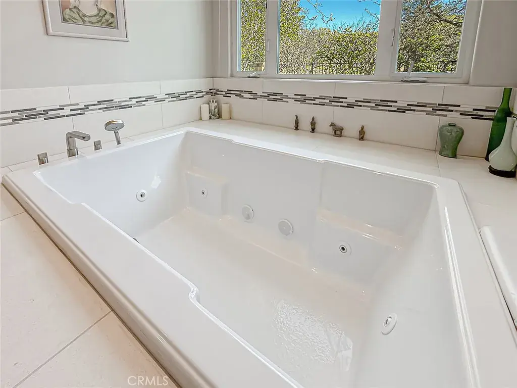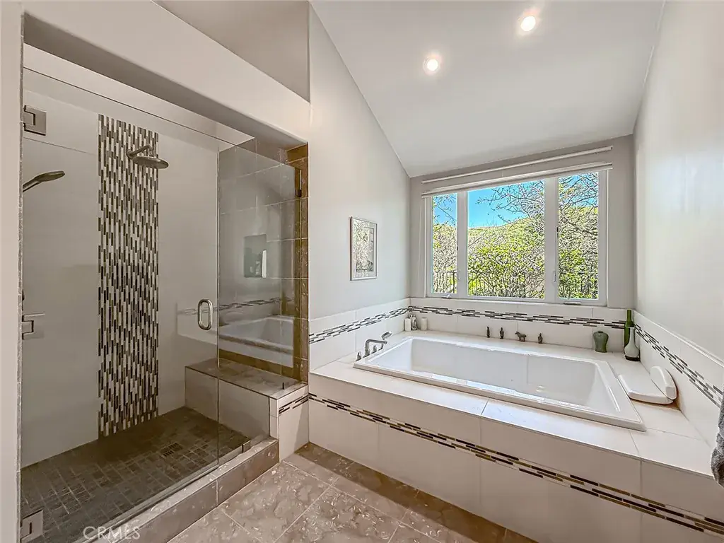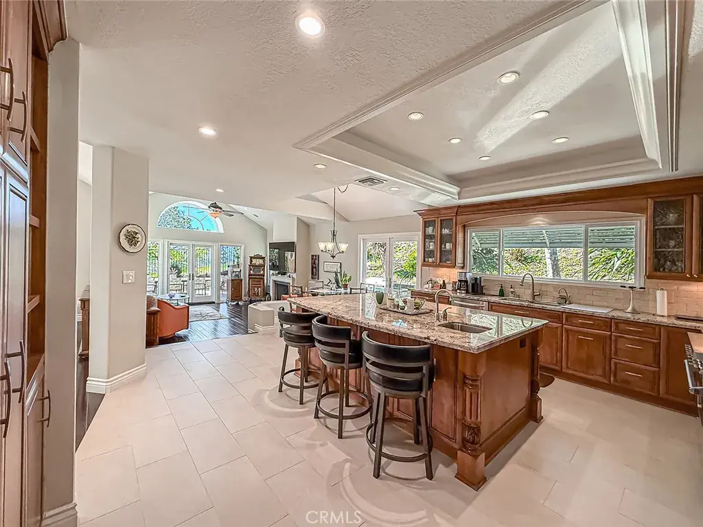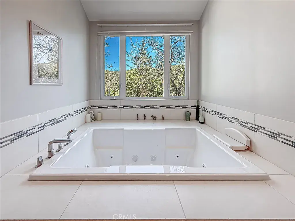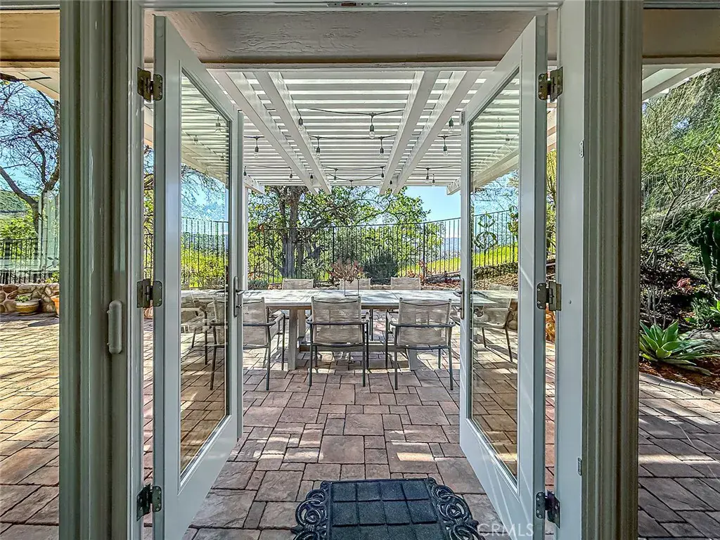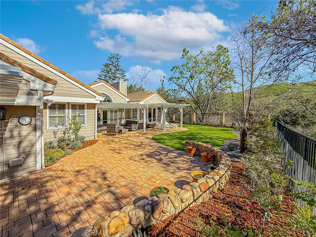 This gorgeous, highly sought after, ranch home embodies what Thousand Oaks living is all about. Upon entering, the peaceful backdrop of tree lined rolling hills greets you immediately. There is no escaping the beauty of nature from any room in this home. The many updated windows in every living area provide endless views of mature trees and greenery. The high ceilings allow for tons of natural light and add to the feeling of being transported into the countryside. With over 3200 sq ft, this single-story home offers four bedrooms and 4 bathrooms. The layout is ideal with the primary located on one side of the home and the other three rooms on the other. One bedroom is currently being used as an office with solid built-in desks providing functionality. Designed with a seamless flow for daily living, the floorplan offers a renovated kitchen with an eating area that opens to the family room and directly to the outdoor area which is professionally landscaped and equipped with tasteful pavers, a built-in BBQ, and covered patios. There is also a formal dining room, living room, and bar area, which all overlook the outdoor scenery and lend the home to effortless entertaining. The primary bedroom is a true escape designed with detail in mind. The large room has a picture window view of the backyard, the closet has been enlarged and custom fitted for optimal storage and function, and the jetted tub and double sink with a vanity built in offer spa-like luxury. The large laundry room leads to the 3-car garage. One bay has been remodeled with added storage and a large tool bench. On the other side of the home, you will find three other bedrooms. One of those secondary bedrooms has a large en-suite bath which could be a great option for guests, in-laws, or children. This home offers all renovated bathrooms, ample cabinets throughout the home, custom shutters, leased solar that keeps electrical bills very low, a security system in place, surround sound in the family room, wiring for an EV charger, and 3 Ring cameras. The real star of the show is the yard and the views from it. Perched on the hill, the view goes on for miles, nature is all around you, and you cannot miss the sheer calm that this home provides. The HOA includes a basketball/sport court, a tennis court and walking trails. You do not want to miss it!!