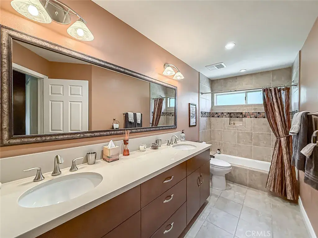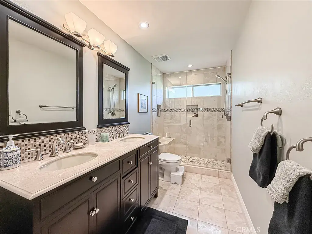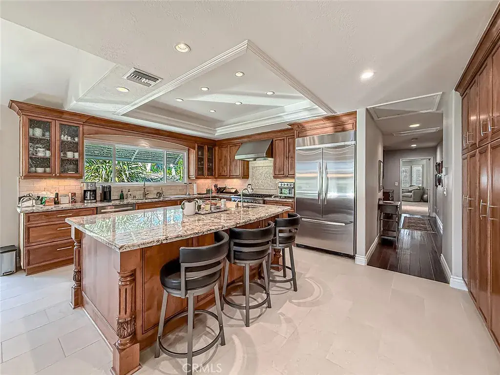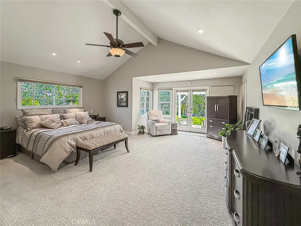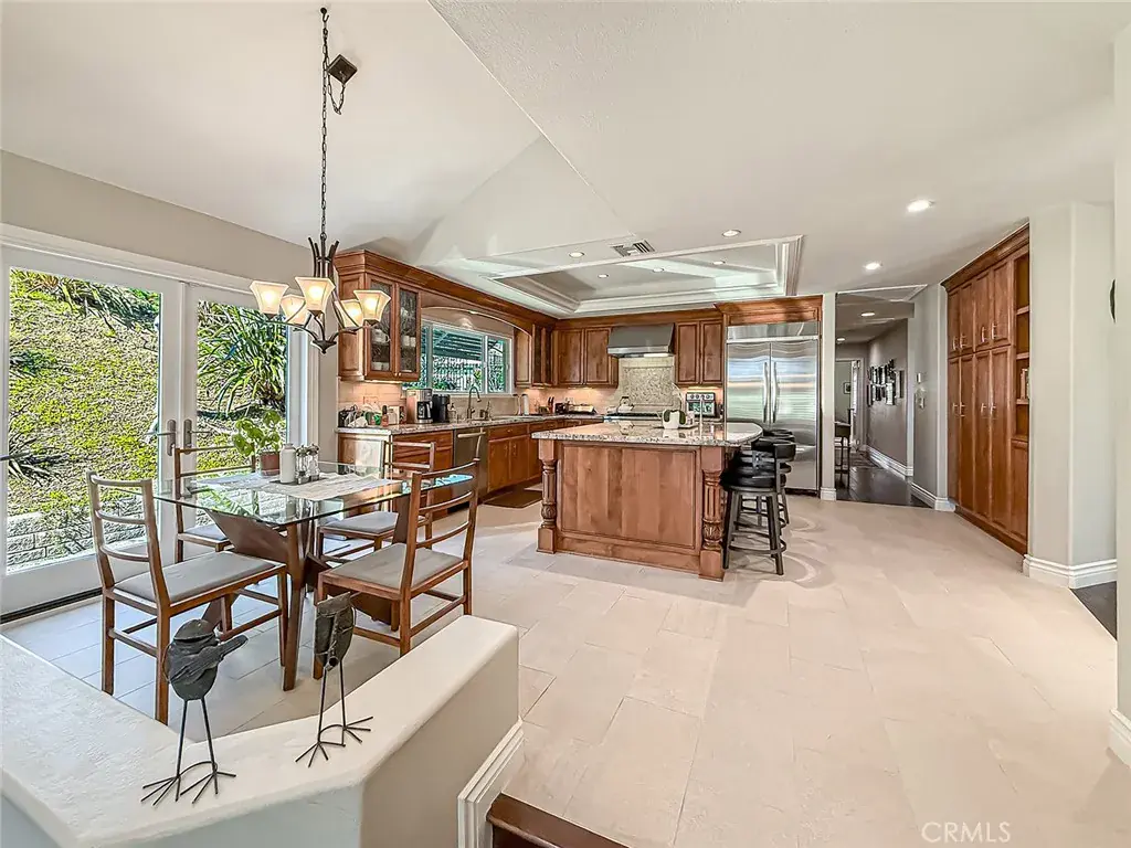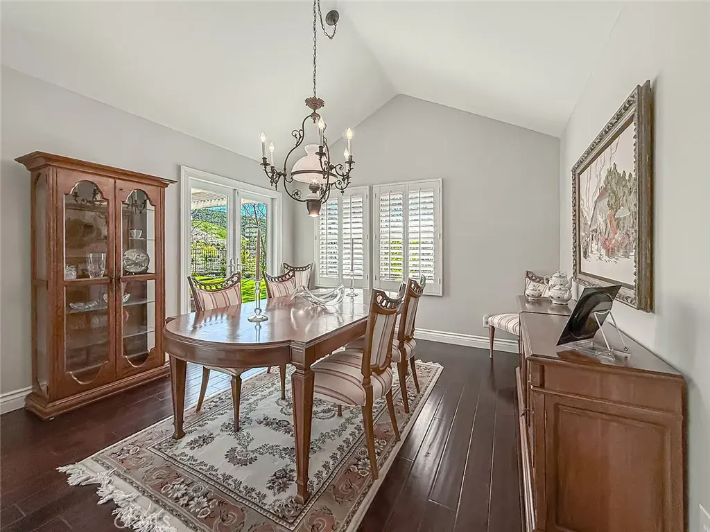 This gorgeous, highly sought after, ranch home embodies what Thousand Oaks living is all about. Upon entering, the peaceful backdrop of tree lined rolling hills greets you immediately. There is no escaping the beauty of nature from any room in this home. The many updated windows in every living area provide endless views of mature trees and greenery. The high ceilings allow for tons of natural light and add to the feeling of being transported into the countryside. With over 3200 sq ft, this single-story home offers four bedrooms and 4 bathrooms. The layout is ideal with the primary located on one side of the home and the other three rooms on the other. One bedroom is currently being used as an office with solid built-in desks providing functionality. Designed with a seamless flow for daily living, the floorplan offers a renovated kitchen with an eating area that opens to the family room and directly to the outdoor area which is professionally landscaped and equipped with tasteful pavers, a built-in BBQ, and covered patios. There is also a formal dining room, living room, and bar area, which all overlook the outdoor scenery and lend the home to effortless entertaining. The primary bedroom is a true escape designed with detail in mind. The large room has a picture window view of the backyard, the closet has been enlarged and custom fitted for optimal storage and function, and the jetted tub and double sink with a vanity built in offer spa-like luxury. The large laundry room leads to the 3-car garage. One bay has been remodeled with added storage and a large tool bench. On the other side of the home, you will find three other bedrooms. One of those secondary bedrooms has a large en-suite bath which could be a great option for guests, in-laws, or children. This home offers all renovated bathrooms, ample cabinets throughout the home, custom shutters, leased solar that keeps electrical bills very low, a security system in place, surround sound in the family room, wiring for an EV charger, and 3 Ring cameras. The real star of the show is the yard and the views from it. Perched on the hill, the view goes on for miles, nature is all around you, and you cannot miss the sheer calm that this home provides. The HOA includes a basketball/sport court, a tennis court and walking trails. You do not want to miss it!!
