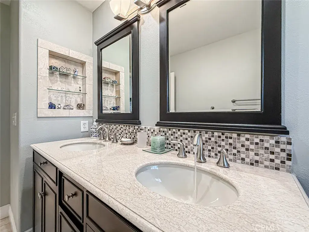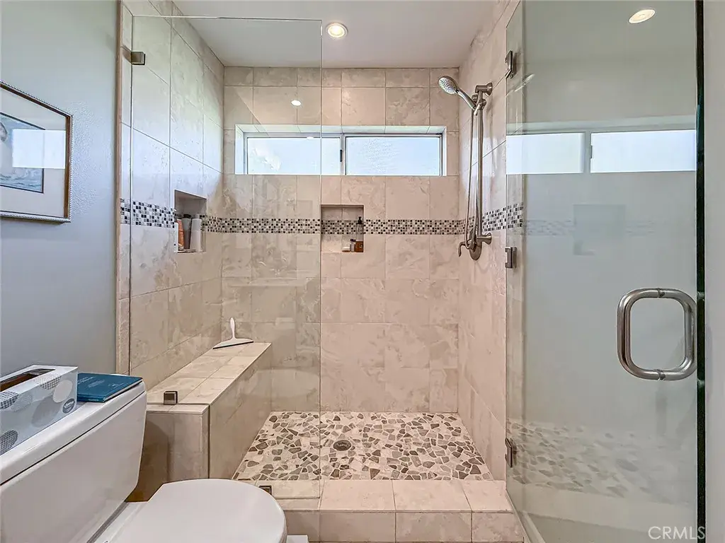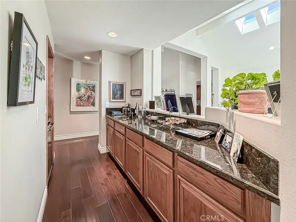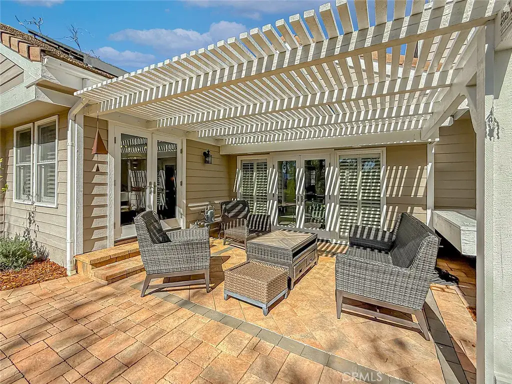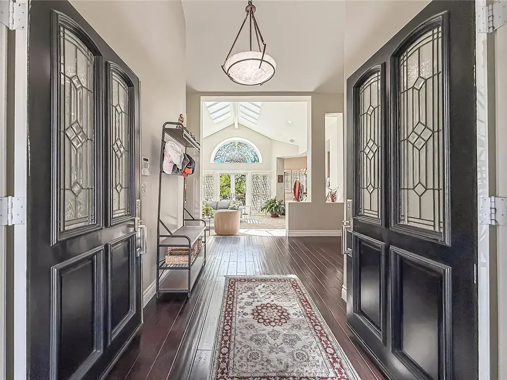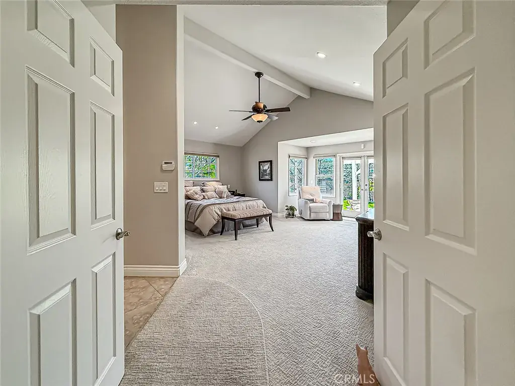 This gorgeous, highly sought after, ranch home embodies what Thousand Oaks living is all about. Upon entering, the peaceful backdrop of tree lined rolling hills greets you immediately. There is no escaping the beauty of nature from any room in this home. The many updated windows in every living area provide endless views of mature trees and greenery. The high ceilings allow for tons of natural light and add to the feeling of being transported into the countryside. With over 3200 sq ft, this single-story home offers four bedrooms and 4 bathrooms. The layout is ideal with the primary located on one side of the home and the other three rooms on the other. One bedroom is currently being used as an office with solid built-in desks providing functionality. Designed with a seamless flow for daily living, the floorplan offers a renovated kitchen with an eating area that opens to the family room and directly to the outdoor area which is professionally landscaped and equipped with tasteful pavers, a built-in BBQ, and covered patios. There is also a formal dining room, living room, and bar area, which all overlook the outdoor scenery and lend the home to effortless entertaining. The primary bedroom is a true escape designed with detail in mind. The large room has a picture window view of the backyard, the closet has been enlarged and custom fitted for optimal storage and function, and the jetted tub and double sink with a vanity built in offer spa-like luxury. The large laundry room leads to the 3-car garage. One bay has been remodeled with added storage and a large tool bench. On the other side of the home, you will find three other bedrooms. One of those secondary bedrooms has a large en-suite bath which could be a great option for guests, in-laws, or children. This home offers all renovated bathrooms, ample cabinets throughout the home, custom shutters, leased solar that keeps electrical bills very low, a security system in place, surround sound in the family room, wiring for an EV charger, and 3 Ring cameras. The real star of the show is the yard and the views from it. Perched on the hill, the view goes on for miles, nature is all around you, and you cannot miss the sheer calm that this home provides. The HOA includes a basketball/sport court, a tennis court and walking trails. You do not want to miss it!!