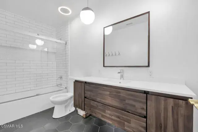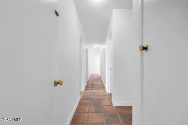 Welcome to 1558 Norwich Ave.! – a stunning 5-bedroom, 2-bathroom, 2,065 sq ft mid-century modern style home located in the highly sought-after Shadow Oaks neighborhood of Thousand Oaks. This gem boasts charming curb appeal, a classic double-door entry and beautifully blends timeless design with modern updates. Step inside to find Spanish tile flooring, exposed beam ceilings, stylish light fixtures, bold accents and floor-to-ceiling windows that bathe the home in natural light. The inviting living room features a large brick fireplace–perfect for cozy evenings. Enjoy the spacious kitchen offering quartz countertops, stainless steel appliances, a farmhouse sink, breakfast bar, recessed lighting and unique folding kitchen windows that create a seamless indoor-outdoor flow–ideal for entertaining with a convenient pass-through to the backyard. The primary suite is a private retreat showcasing an updated ensuite bathroom. Four additional bedrooms (one with a large glass slider leading to the backyard), a beautifully upgraded guest bath, laundry room with ample storage and a direct-access 2-car garage complete the thoughtfully designed interior. Outside, relax in your very own backyard oasis with a sparkling pool, sun deck, garden with lemon & peach trees, a detached air-conditioned workspace/art studio (with a window) as well as plenty of space to unwind. Centrally located near shopping, dining, award-winning schools, parks, hiking trails and more – welcome home! *Additional amenities include – freshly painted interior/exterior, solar, newer HVAC/ducting & plumbing.