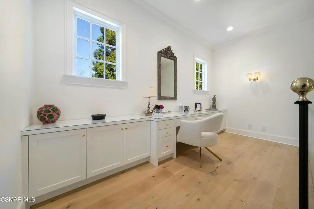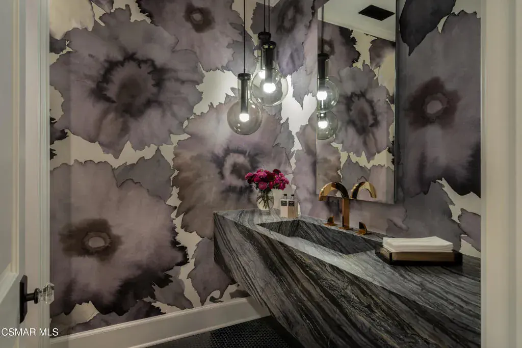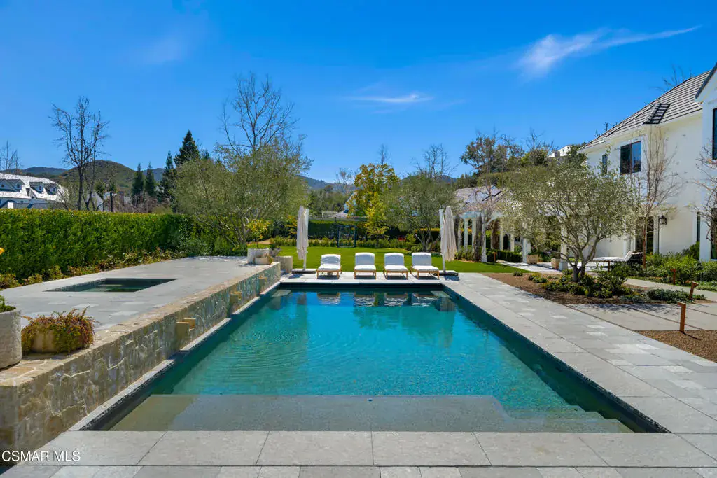 This stunningly reimagined estate seamlessly blends classic sophistication with fresh, contemporary design, creating a truly unique masterpiece–unlike anything else in Sherwood. A rare opportunity to own one of the most exquisite and impeccably crafted properties in prestigious Sherwood Country Club, set on a premier flat acre with breathtaking lake and mountain views. Spanning approximately 8,383 sq. ft., this home is designed for luxury and comfort, featuring an incredible floor plan with a unique layout of six en-suite bedrooms, including two conveniently located downstairs, and seven baths. The gourmet kitchen flows seamlessly into a spacious family room, complemented by a library/office, a formal living room, and a spectacular dining room that exudes elevated sophistication and modern flair. Upstairs, a secondary family/media room offers the perfect space for entertainment. The sumptuous primary suite is a true retreat, featuring a cozy fireplace, a private balcony with lake views, and a salon-style shampoo station in the luxurious primary bath. Pocket doors open to the ultimate outdoor oasis, featuring covered loggias, a state-of-the-art outdoor living room with an entertainment center and fireplace, an outdoor kitchen & BBQ, a sparkling pool & spa, and batting cage. In addition, the backyard showcases raised planters and a serene lavender haven, offering a tranquil and lush environment. This is California living at its finest, offering panoramic views of Sherwood’s stunning landscape in an estate remodeled to absolute perfection!
