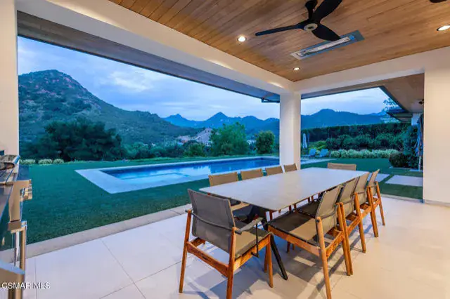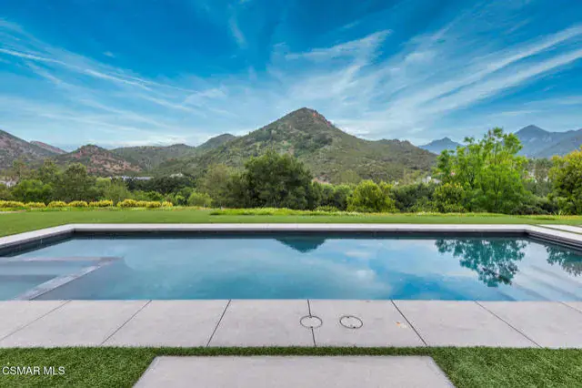 Absolutely extraordinary CUSTOM SINGLE LEVEL contemporary with panoramic views! A VERY rare offering with an ideal location in guard gated Lake Sherwood! Professionally designed and masterfully built to perfection! Features of this open concept masterpiece include a screening room/office, true formal dining room with temperature controlled wine wall and a breathtaking ‘Great room’ enhanced by Fleetwood pocket doors, custom wood ceilings and a floor to ceiling fireplace with tiles imported from Japan. The beautiful center island kitchen is graced with top of the line appliances and opens seamlessly to the ‘great room’. There is also a centrally located walk in wet bar with large custom fold away windows. The exquisite Primary is second to none and provides TWO separate attached bathrooms and two large finished closets. The resort quality grounds are simply remarkable! Enjoy the custom pool and spa, firepit, barbecue center, an abundance of lush manicured lawns and a remarkable covered outdoor living room all with complete privacy and stellar views of the Golf course and surrounding mountains! Other important and thoughtful amenities include a FIVE car garage, solar system, smart home and a generator. This remarkably designed home is built with timeless finishes and is an absolute one of one! Nothing else compares!