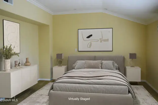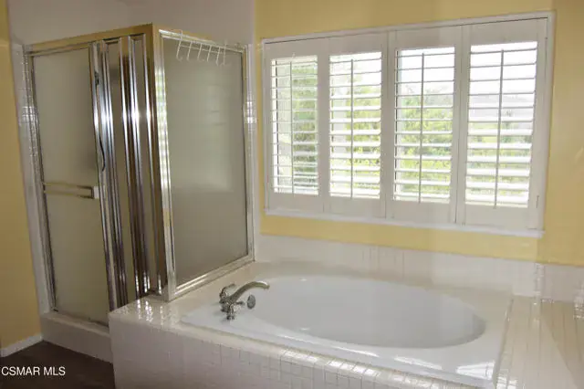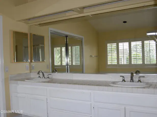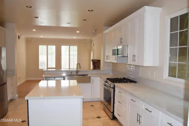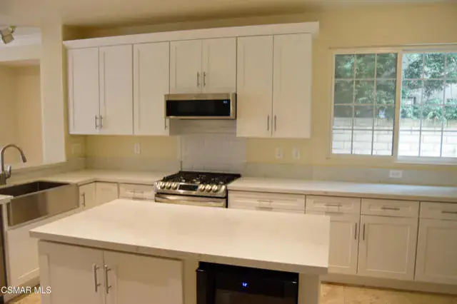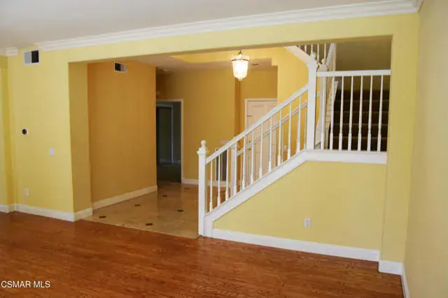 Delightful two story, 4 bedroom and 3 bath home with expansive 3 car garage in desirable Thousand Oaks community. This home features hardwood, travertine tile and carpeted flooring with a separate living room and family room area with gas burning fireplace. The upgraded kitchen has all stainless steel appliances, a center island and quartz counters. There is a downstairs bedroom with an adjoining bath and a separate laundry room. Upstairs you will find three additional bedrooms, a dual bathroom supporting two bedrooms and the primary suite with walk-in closet and a bathroom with tile counters, dual vanity and a separate tub and shower. Plantation shutters and crown molding enhance the home’s interior. There is an appealing courtyard entry with colorful and attractive landscaping. This home is located close to shopping, parks, award winning elementary school and affords easy freeway access.
