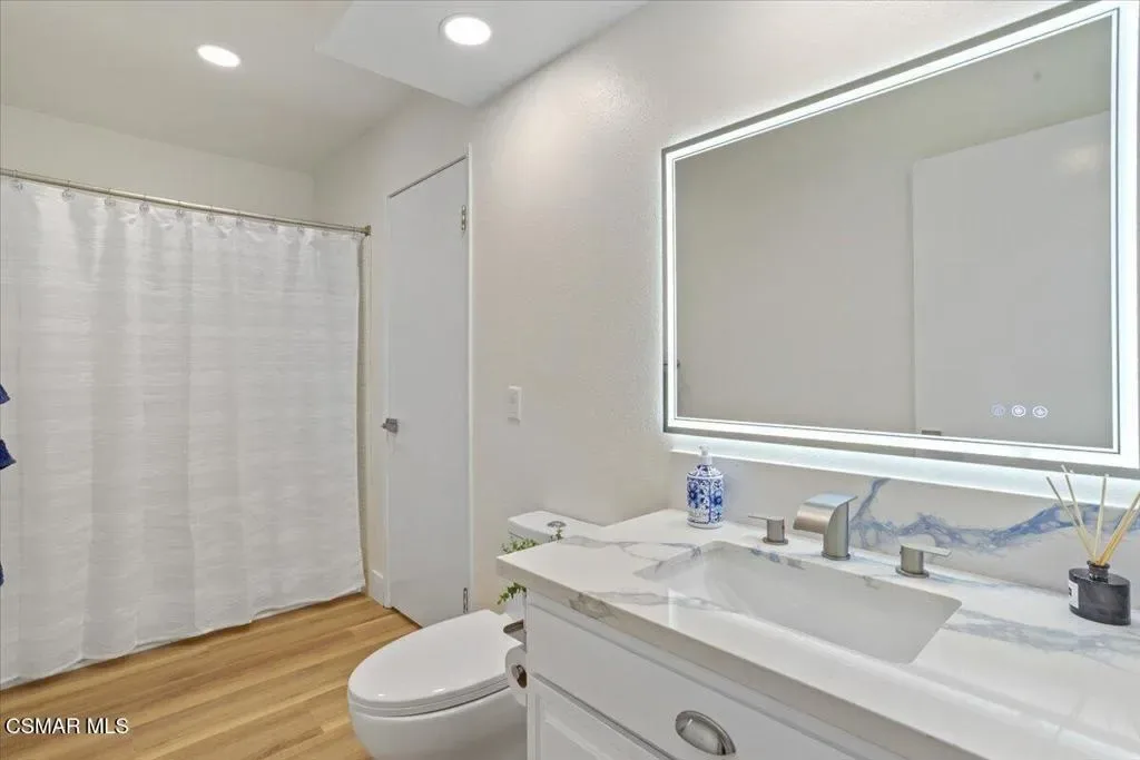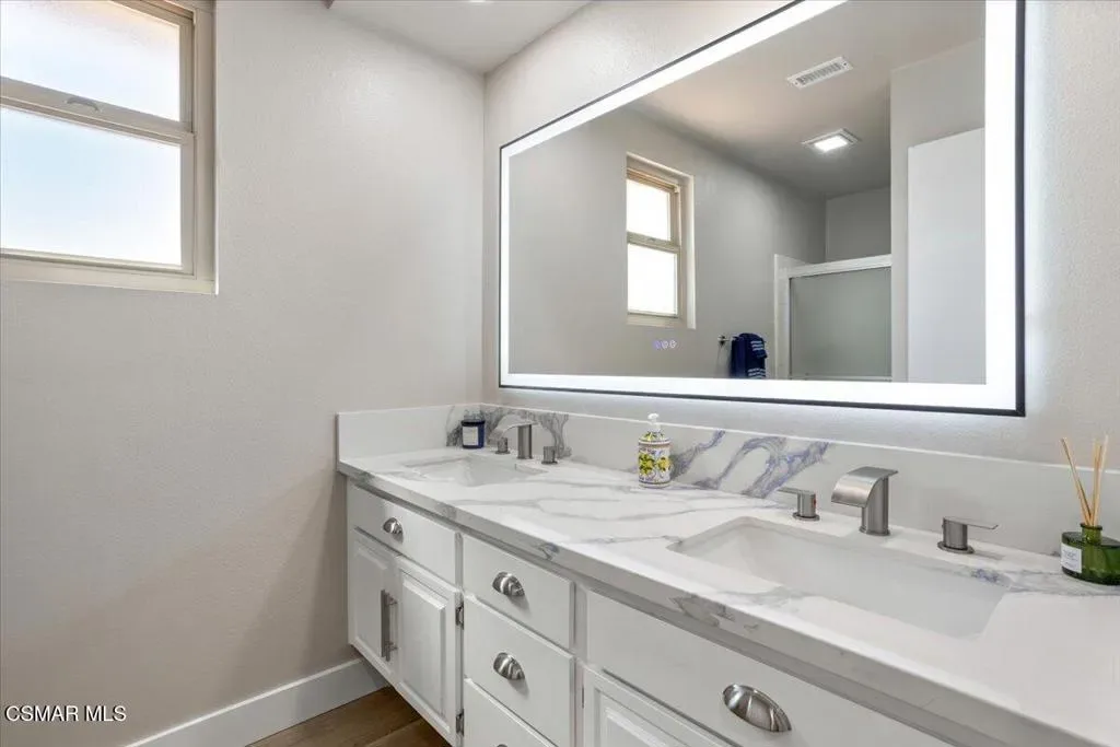 ‘ENRICH YOUR LIFESTYLE —LOCATION—LOCATION—START FRESH–LIVE BETTER–Welcome to a beautifully upgraded home in one of the most sought-after neighborhoods near — California Lutheran University — where comfort, style, and convenience come together. A spacious 4-bedroom, 3-bathroom home offers 2,471 sq ft of living space on a generous 7,840 sq ft lot, complete with a 3-car garage. From the moment you arrive, you’re greeted by a charming brick entry and elegant Caramel-colored wood double doors that set the tone for what’s inside. Step through the front door to soaring cathedral ceilings and a light-filled interior freshly painted with Dunn-Edward’s designer tones with crisp white ceilings and trim creating a warm yet modern aesthetic throughout. Brand-new waterproof flooring flows seamlessly in the home, complimented by new countertops throughout. The kitchen and family room feature new striking modern concrete colored quartz surfaces, while the bathrooms showcase updated quartz white countertops with a refined blue satin finish. The chef’s kitchen is thoughtfully designed with a stainless-steel sink, integrated cutting board, vegetable washing tray, and drying rack, along with a sleek five-burner gas cooktop and stainless-steel hood–perfect for both everyday cooking and gatherings. The kitchen open concept flows into the family room which includes a bar counter and a gas fireplace ready for entertaining. The main suite is generously sized, offering a large walk-in closet and a spacious bathroom with dual sinks and a walk down shower tub. The second bathroom upstairs also features dual sinks and a shower-tub combination, the fourth bedroom downstairs provide exceptional flexibility for multi-generational living, complete with its own walk-in closet and en-suite bathroom with dual access–conveniently serving both the bedroom and visitors. Enjoy cozy evenings by either of the two brick hearth gas fireplaces, located in both the living room and family room. Step outside to a beautifully resurfaced backyard patio in a rich mission red tone, surrounded by thoughtfully designed drought-resistant landscaping with native shrubs–perfect for relaxing or entertaining with minimal maintenance. Thistlewood home’s location is truly unbeatable. Springfield Park is down the street featuring workout centers, basketball court, fields for soccer, football & baseball, stroller path, playground, creek to catch Crawdads, picnic tables and allows dogs. You’re just a short walk to California Lutheran University, including access to public lap pool and public play pool for family and kids. Scenic trails through Mount Clef Ridge–ideal for hiking and mountain biking. Everyday conveniences are also walkable, including Trader Joe’s and a variety of popular dining options. With its extensive upgrades, flexible layout, and prime location, this exceptional home offers the perfect blend of lifestyle and livability. –MUST SEE–, Thistlewood won’t last long!–
