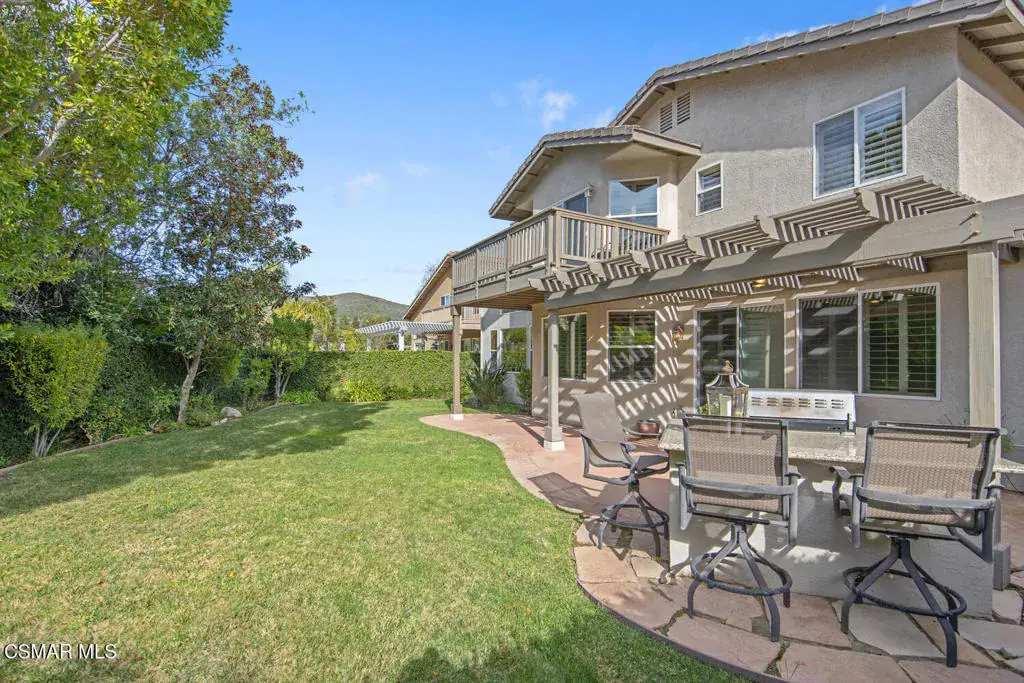 Lang Ranch living at its best! Offering mountain views and a versatile floorplan! Discover your dream home in this highly sought-after neighborhood, offering exceptional comfort and flexibility. The updated, light and bright kitchen features an island and casual dining area, while the formal dining room w/ a butler’s pantry is perfect for entertaining or additional home office space. Upstairs, the spacious primary suite includes a private balcony, dual sinks, a soaking tub, and a walk-in closet. Secondary bedrooms are generously sized, and a bonus room provides endless possibilities–playroom, home office, or media room.The desirable downstairs bedroom with an en-suite bath is ideal for guests or multi-generational living, complemented by an additional powder room for convenience.Additional highlights include a finished three-car garage with a Tesla charger and built-in storage, plus a backyard ready for your outdoor oasis (pool, sauna??) (pool renderings available upon request). Nestled in a prime location within a highly desirable school district, this home is close to a community park with basketball court and swing set, walking paths, scenic hiking trails, Gelson’s, restaurants, and convenient freeway access.No HOA dues! This exceptional home offers the perfect blend of comfort, convenience, and natural beauty.