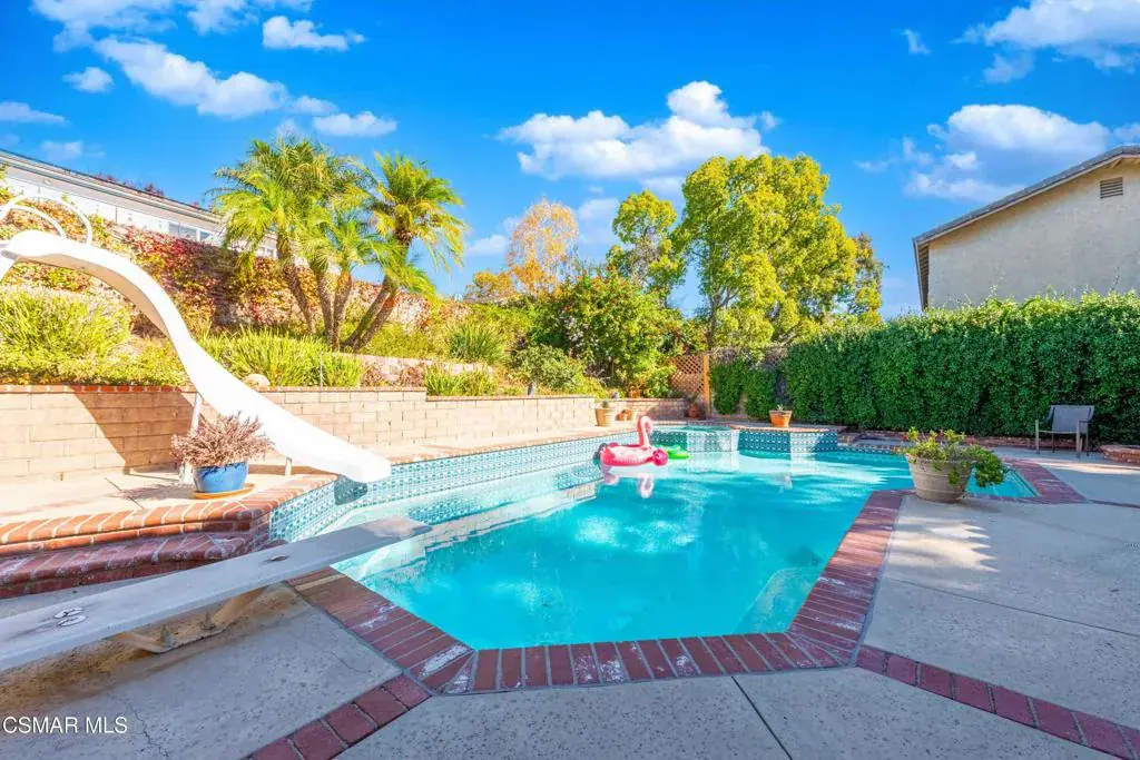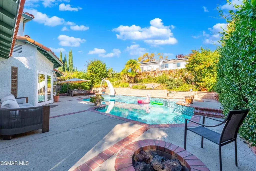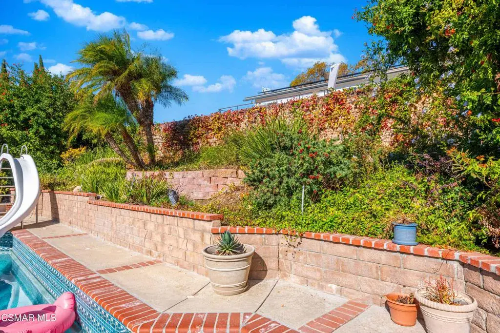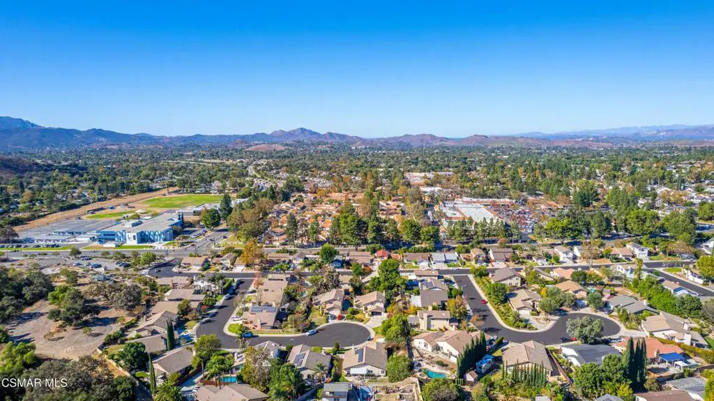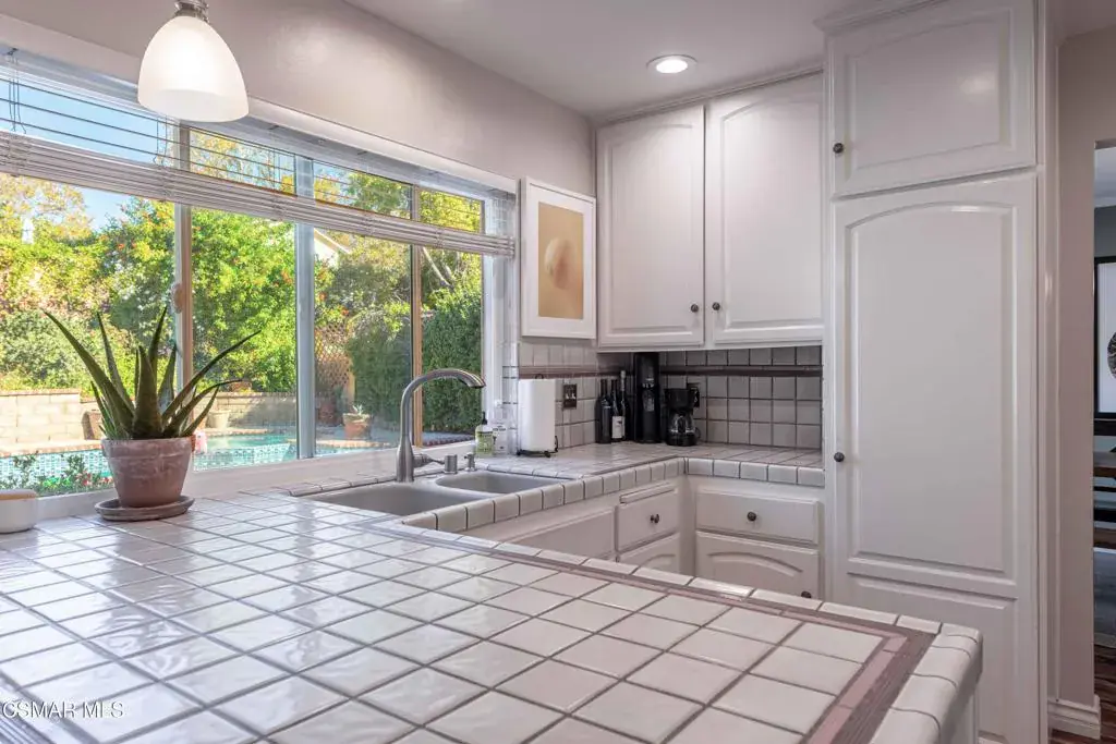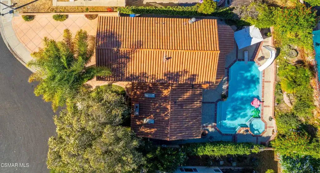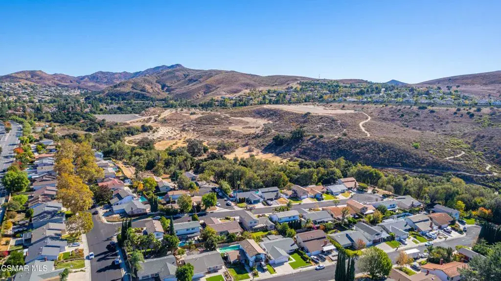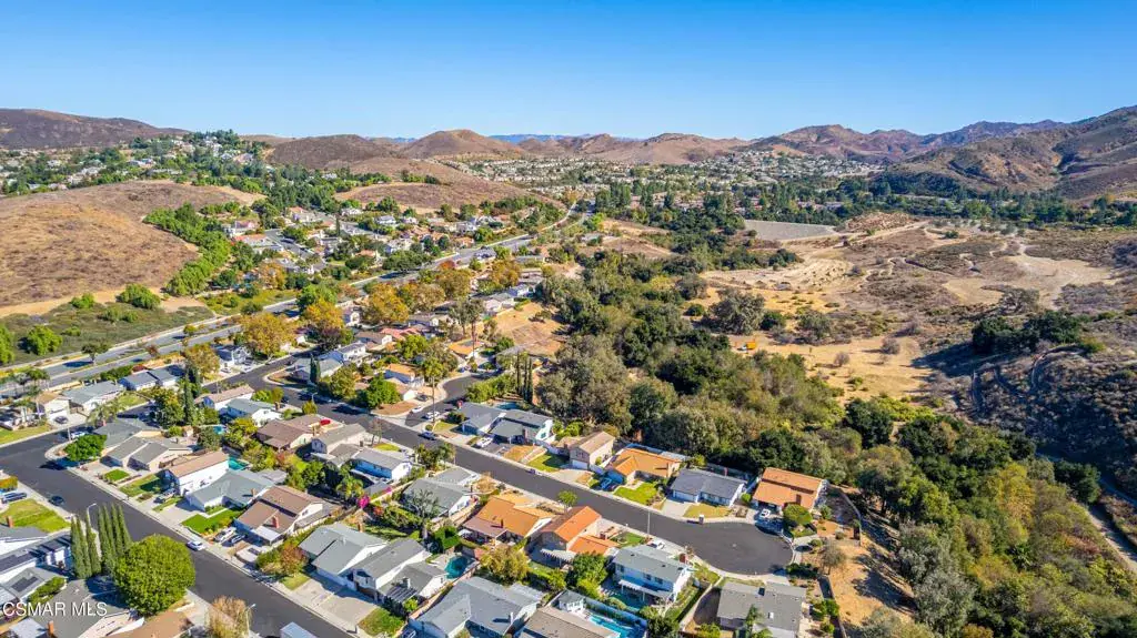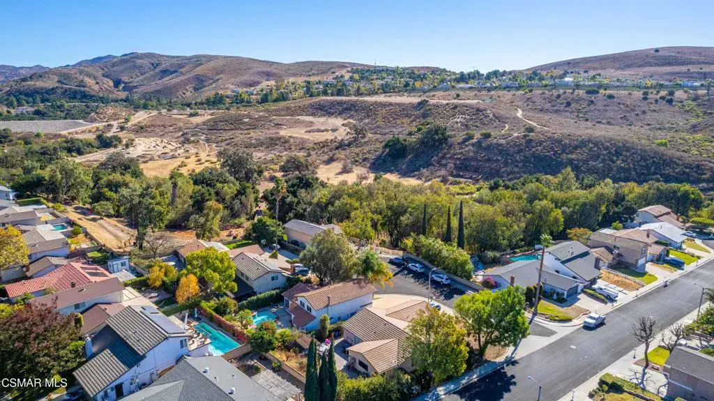 Move right into this beautiful home superbly located on a quiet culdesac in a wonderful area of Thousand Oaks. Situated at the edge of the beautiful Sapwi Trails Community Park, hiking and biking are just steps away. This home does not disappoint with it’s well-thought out floorplan and cheerful ambiance that includes vaulted living room ceiling with skylights; french doors, and plantation shutters. As the largest floorplan in the tract, this home boasts an additional added 220 sq ft of living area in the family room, where you need it the most! Kitchen adjoins with white cabinetry and a view out to the scenic backyard. There’s a breakfast bar featuring pendent lighting for casual meals, as well as a formal dining room with slider for moving the party outside for some al fresco dining. Rounding out the downstairs is a coffee or wet bar for enhanced entertaining and convenient powder room. There’s also direct access to the former garage, turned into flex space, makes a great guest/office space. Features laundry area, plus separate storage, it could easily be turned back into a two car garage or possible ADU. As you head upstairs you will find 4 comfortably sized bedrooms. The three secondary bedrooms share the hall bath outfitted with white subway tile while the spacious primary bedroom features delightful mountain views and is equipped with a large well organized wardrobe closet and upgraded bath. Once outside, the backyard beckons you to stay and play. Vacation at home in large sparkling pool and soothing spa, Dine under the stars or enjoy the lush landscaping, where butterflies and hummingbirds come to visit. The perfect balance of indoor comfort and outdoor enjoyment. Welcome home to SoCal living at its best!