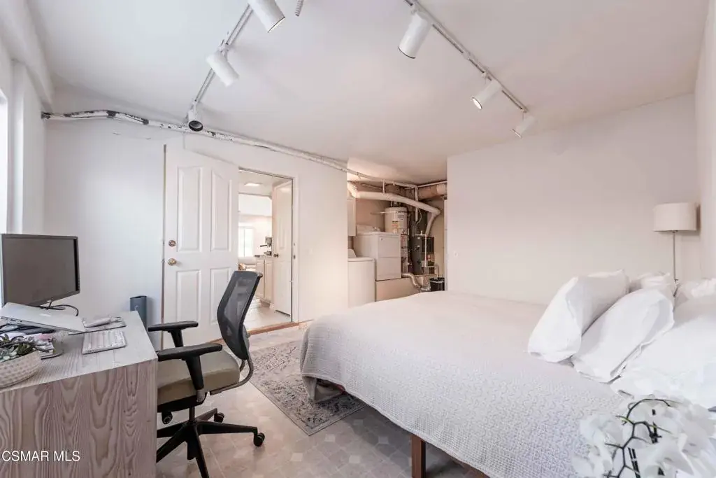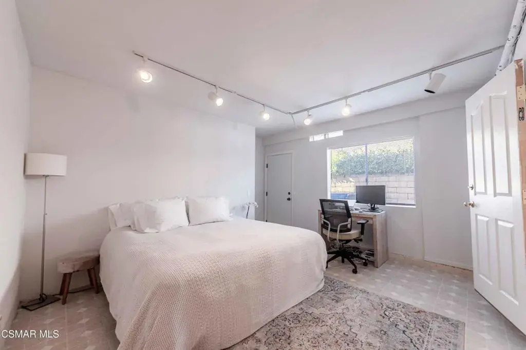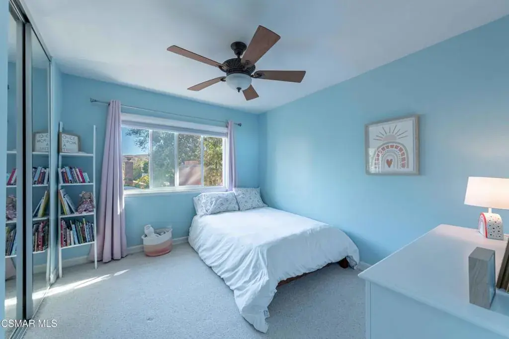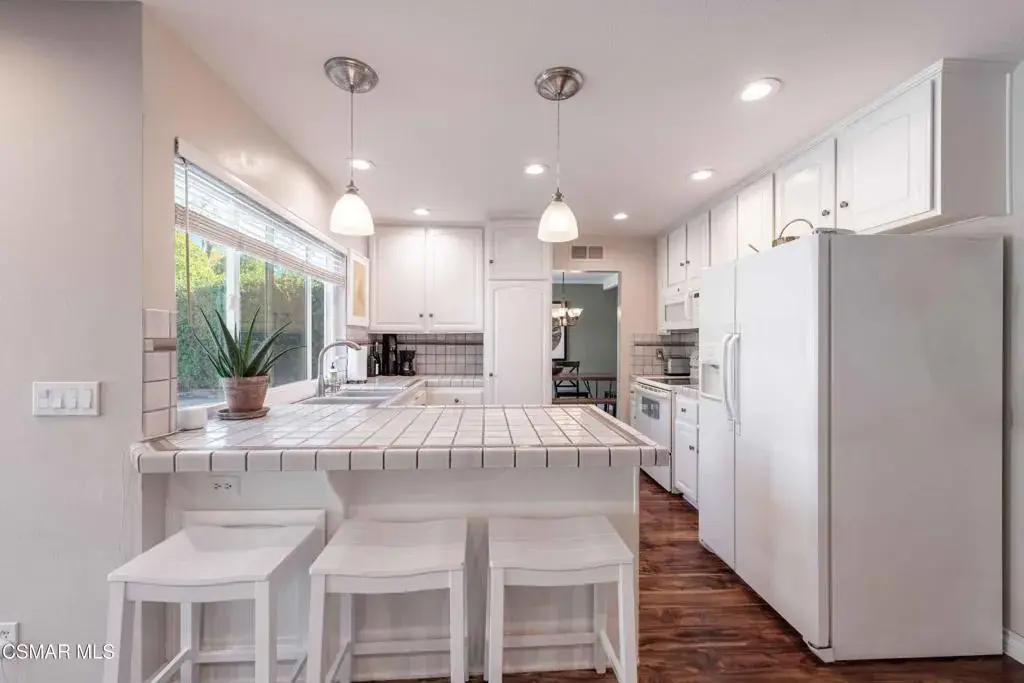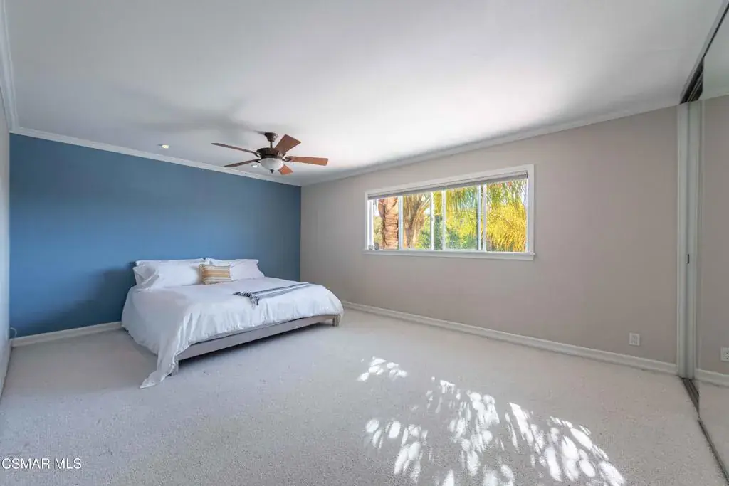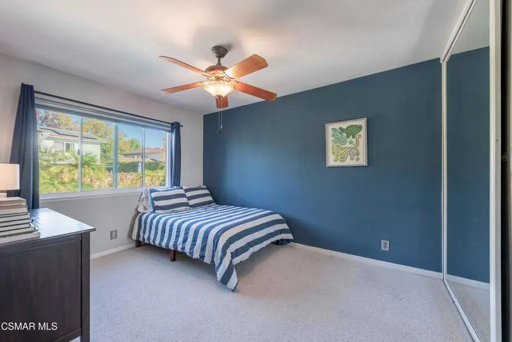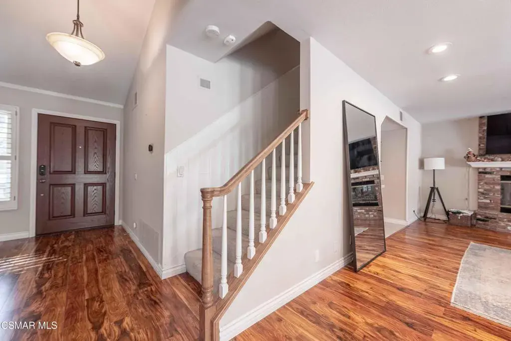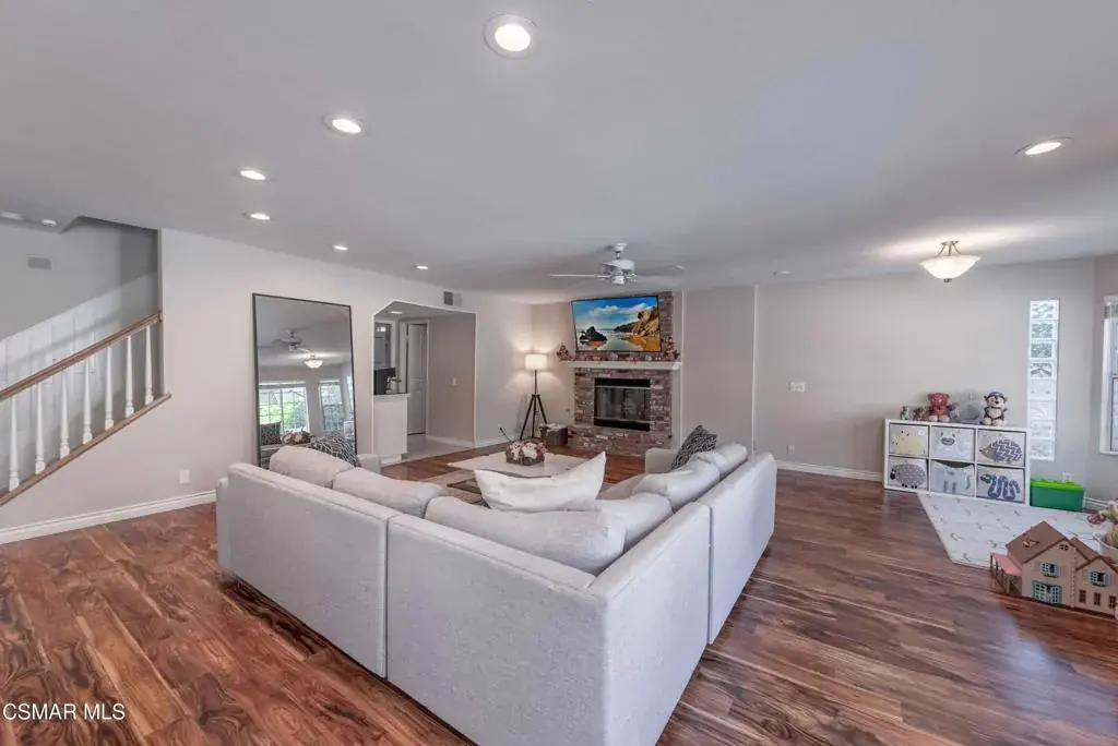Move right into this beautiful home superbly located on a quiet culdesac in a wonderful area of Thousand Oaks. Situated at the edge of the beautiful Sapwi Trails Community Park, hiking and biking are just steps away. This home does not disappoint with it’s well-thought out floorplan and cheerful ambiance that includes vaulted living room ceiling with skylights; french doors, and plantation shutters. As the largest floorplan in the tract, this home boasts an additional added 220 sq ft of living area in the family room, where you need it the most! Kitchen adjoins with white cabinetry and a view out to the scenic backyard. There’s a breakfast bar featuring pendent lighting for casual meals, as well as a formal dining room with slider for moving the party outside for some al fresco dining. Rounding out the downstairs is a coffee or wet bar for enhanced entertaining and convenient powder room. There’s also direct access to the former garage, turned into flex space, makes a great guest/office space. Features laundry area, plus separate storage, it could easily be turned back into a two car garage or possible ADU. As you head upstairs you will find 4 comfortably sized bedrooms. The three secondary bedrooms share the hall bath outfitted with white subway tile while the spacious primary bedroom features delightful mountain views and is equipped with a large well organized wardrobe closet and upgraded bath. Once outside, the backyard beckons you to stay and play. Vacation at home in large sparkling pool and soothing spa, Dine under the stars or enjoy the lush landscaping, where butterflies and hummingbirds come to visit. The perfect balance of indoor comfort and outdoor enjoyment. Welcome home to SoCal living at its best!