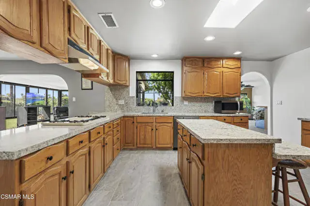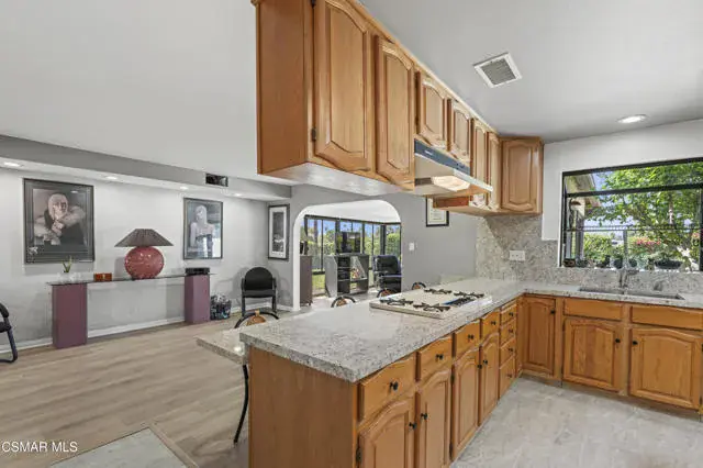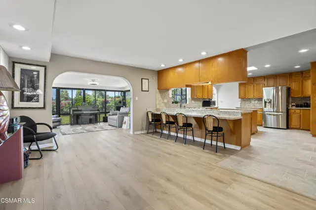 This single-story ranch home in the heart of Thousand Oaks has been expanded and features many recent updates including electrical panel, water heater, flooring, paint, counters in kitchen as well as one of the bathrooms. There is an addition of a large permitted entertaining room and laundry. The sunroom is perfect for those quiet afternoons where you want to enjoy the beauty of the private yard. A large carport on the side could easily store toys or be removed to store your RV. The large lot is beautifully landscaped and provides ample privacy. With close proximity to shopping, schools, entertainment, and outdoor activities, this home should not be missed.