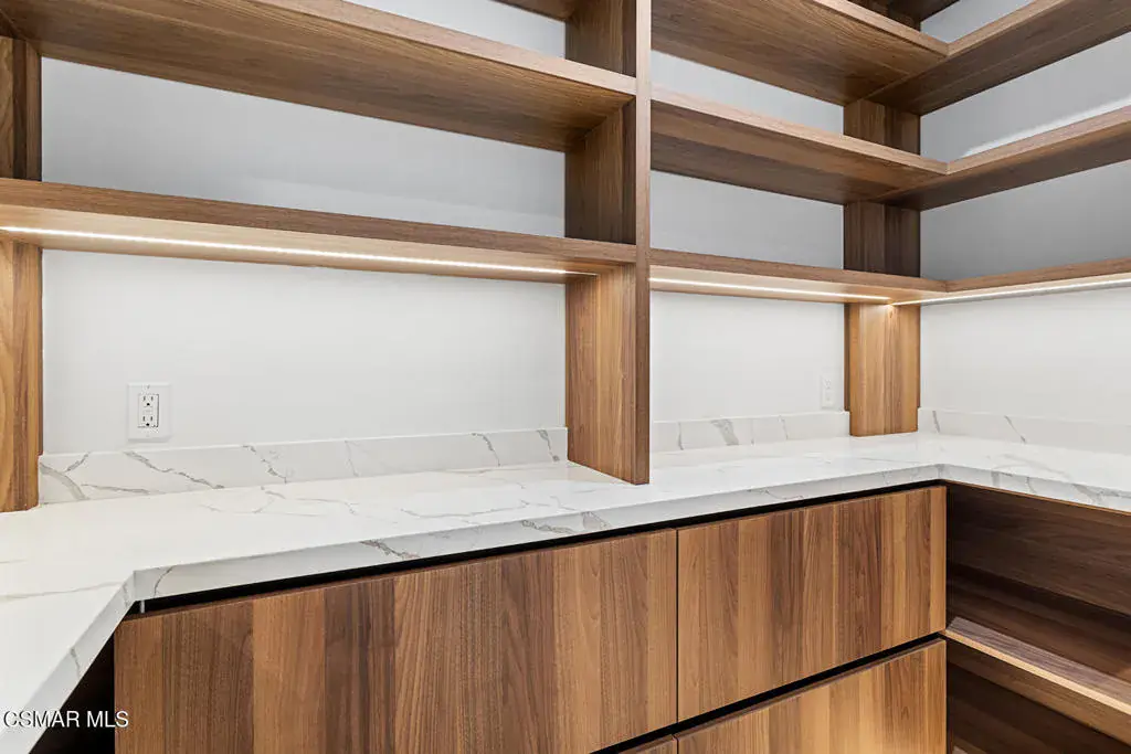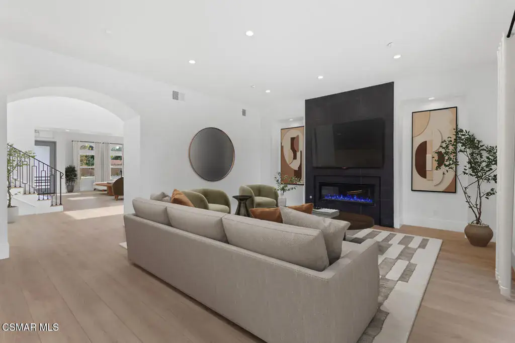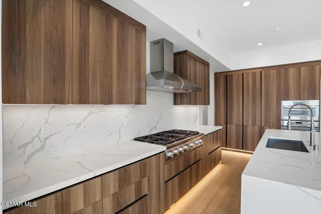 This exquisitely designed, brand-new modern two-story residence is located in the heart of Thousand Oaks and offers approximately 3,718 square feet of expansive luxury living on a flat 7,180 square-foot lot. Available for immediate occupancy, the home features four generously sized bedrooms and four and one-half bathrooms, including a desirable first-floor guest bedroom with an attached bath, ideal for visitors or extended family. Each bedroom is thoughtfully appointed with its own en-suite bathroom, ensuring privacy, comfort, and refined living throughout.This exceptional home is a true showcase of superior design, craftsmanship, and attention to detail, both inside and out. The residence reflects uncompromising quality and elevates the surrounding neighborhood with its sophisticated architectural presence. The open-concept floor plan effortlessly blends indoor and outdoor living, creating a seamless, inviting flow that is both functional and visually striking. Inside, the home offers a formal living room, dining room, and a spacious great room/family room, all finished with contemporary flooring, designer touches, and high-end materials including Italian cabinets.The chef’s kitchen is a true centerpiece, featuring an oversized island, elegant quartz countertops, and premium Thermador appliances, perfectly suited for both everyday living and entertaining. Ten-foot ceilings throughout enhance the sense of space and light, appealing even to the most discerning buyer. The primary bathroom serves as a private retreat, highlighted by a frameless glass shower and sleek quartz finishes.The home enjoys serene panoramic views of the Santa Monica Mountains along with stunning sunsets, providing a peaceful backdrop to everyday living throughout the year. This private enclave by Hydam Homes is situated directly across from the prestigious, multi-million-dollar Lonestar Estates, also thoughtfully developed by Hydam Homes, further enhancing the desirability of the location.Located on the quiet cul-de-sac of Toyon Court, this home offers an exceptional balance of luxury, privacy, and comfort. Hydam Homes invites you to become part of this exclusive community of just nine residences. This remarkable new home presents a rare opportunity to enjoy timeless elegance, lasting tranquility, and exceptional value in one of Thousand Oaks’ most desirable settings.