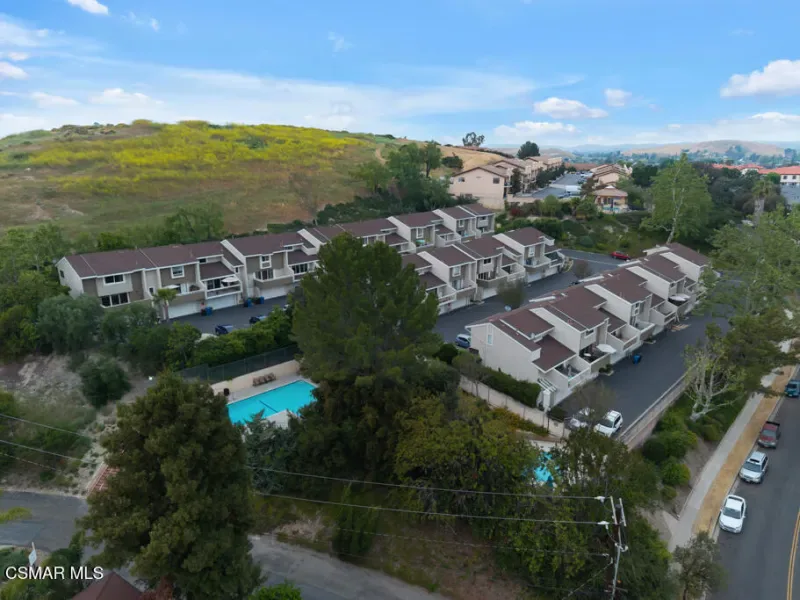 Charming tri-level townhome in an unbeatable Conejo Valley location! Moments from top-rated restaurants, microbreweries, pubs, and coffee houses, and just minutes from some of Southern California’s best hiking trails, Los Robles Public Golf Course, and both major shopping malls. Move-in ready and thoughtfully upgraded throughout.The main level features an open-concept living and dining area anchored by a corner fireplace, balcony, modern kitchen, and an adjacent patio at street level with a private gate for easy access. A conveniently located half bath doubles as the laundry room.Upstairs, the spacious primary suite boasts beautiful views, two generous closets, and a private ensuite bath. Two additional bedrooms share a well-appointed hall bathroom.Upgrades include laminate wood floors throughout, newer dual-paned windows, newer HVAC, solid-core panel doors, and new closet doors in all three bedrooms. Abundant storage throughout, plus an attached two-car garage.