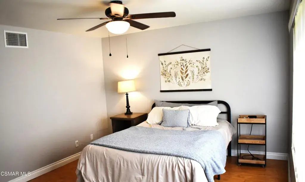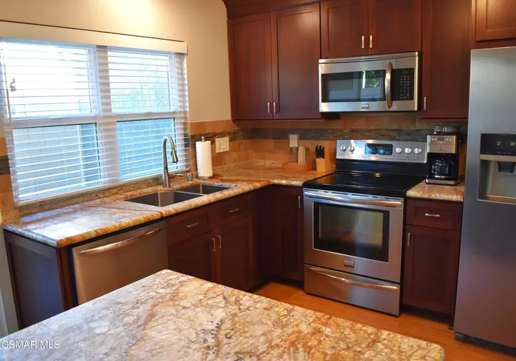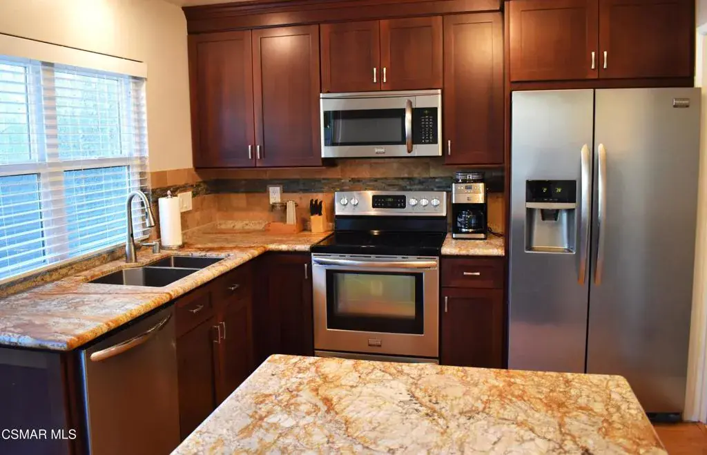 Welcome home to your private retreat with a flexible floor plan! This beautifully upgraded 3 bedroom, 1.5 bath condo is close the park and to the community pool and club house. Enjoy the views from the large window overlooking the tree shaded entry, from your spacious living room. The chef’s kitchen features a kitchen island, granite countertops, ample cabinet space, and a pantry off the kitchen. There is a laundry room off the kitchen and a convenient downstairs 1/2 bathroom.All three bedrooms are upstairs. The spacious primary bedroom has views, a ceiling fan, and direct access to the hall bathroom. The large secondary bedrooms have ceiling fans for warm sunny days. The updated upstairs hall bathroom features a newer vanity and a tub/shower combination.There is plenty of room to relax and entertain on the large patio off the kitchen area. Convenient covered parking is just outside the condo.Welcome home! Enjoy everything the Conejo Valley has to offer!