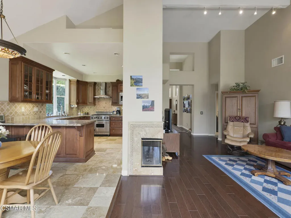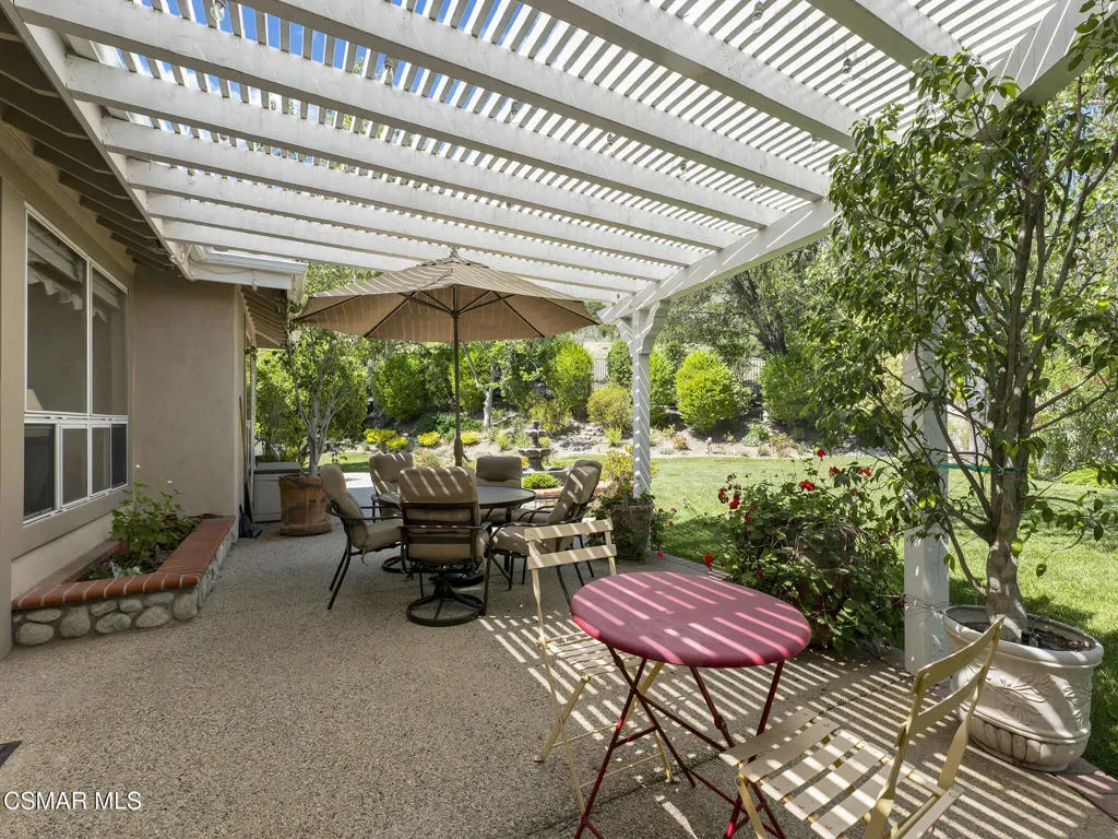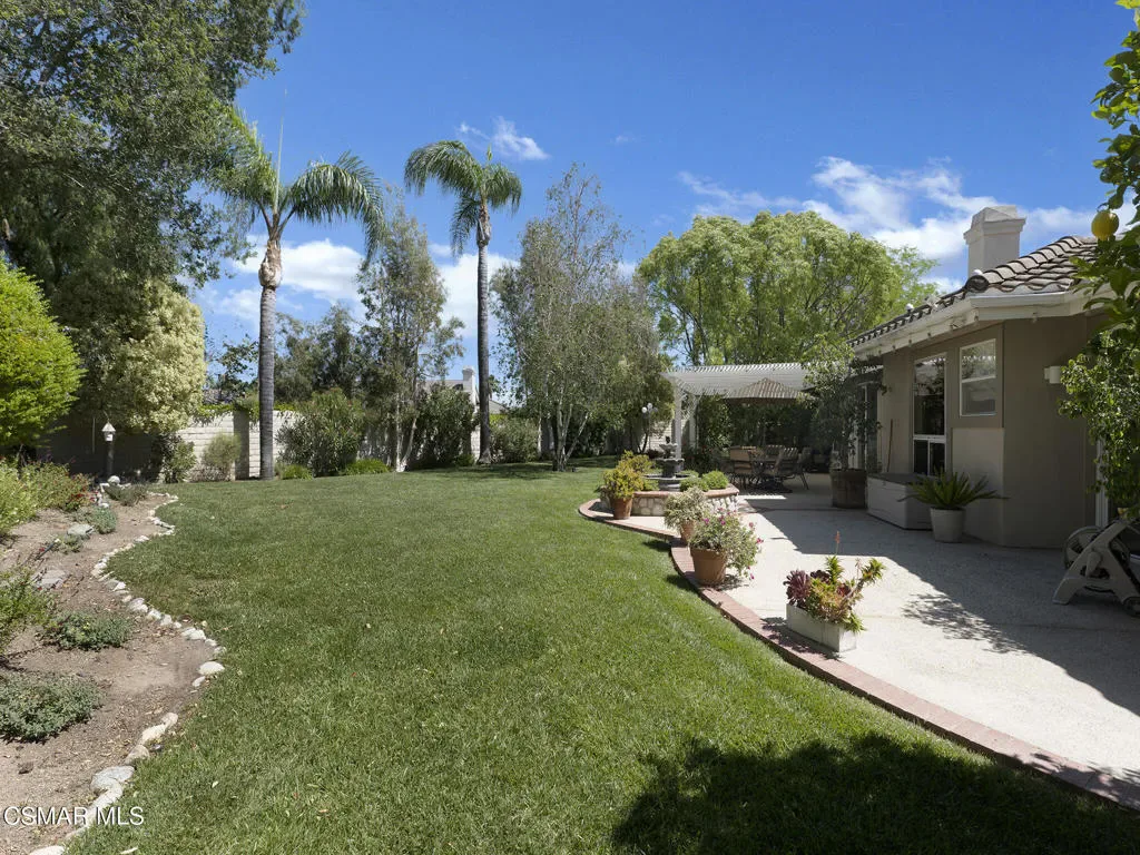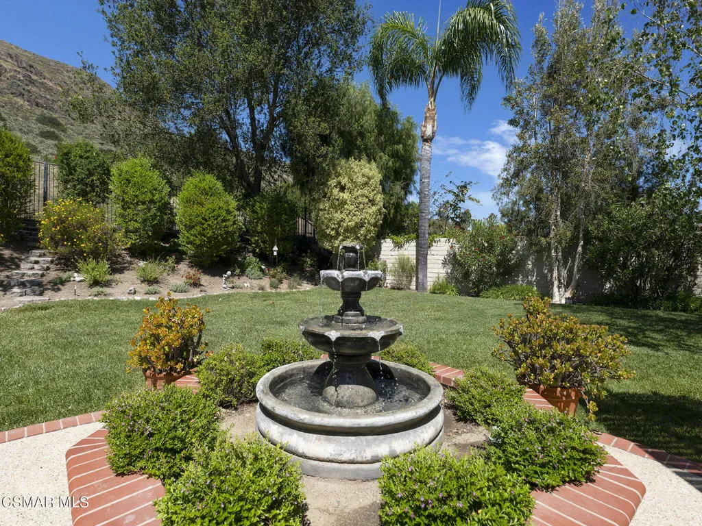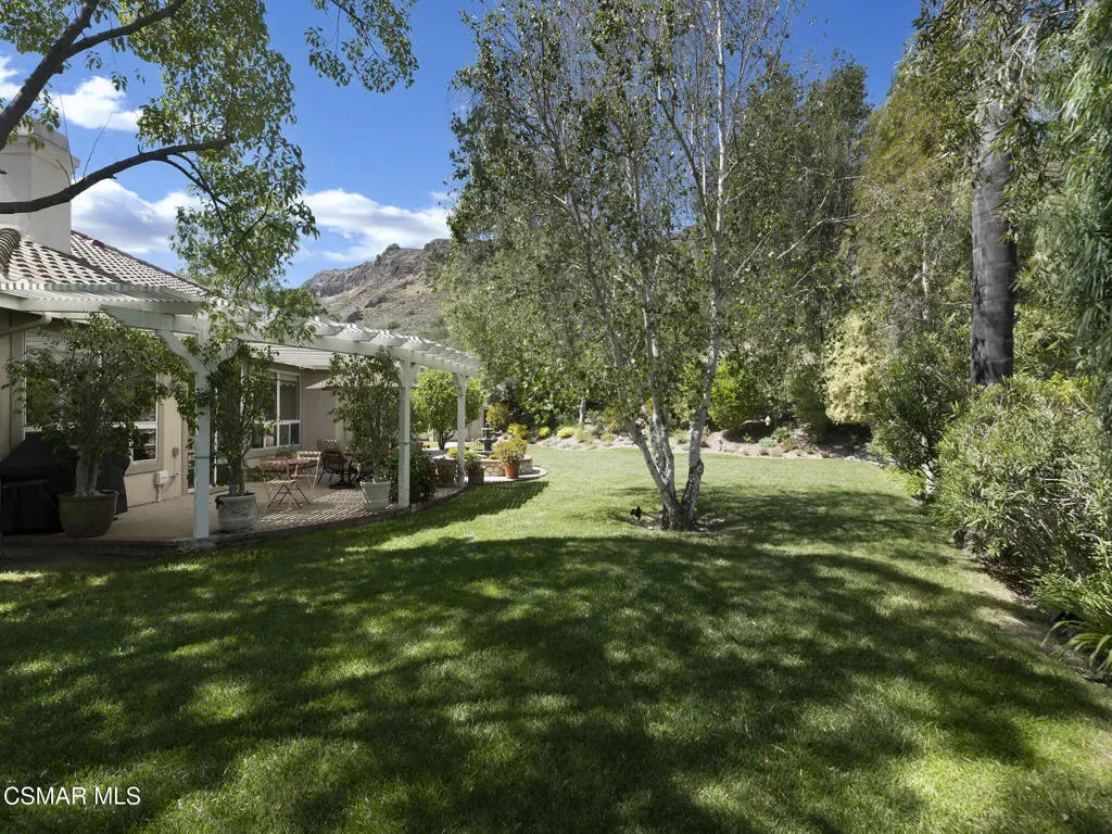Tucked away at the end of a quiet cul-de-sac, this beautifully maintained true single-story could easily be your perfect forever home! Upon entry, the soaring ceilings, architectural cutouts and seamless floorplan immediately set the stage. Enjoy a warm and inviting formal living room with a fireplace that flows naturally into the dining area, creating a comfortable, connected space for both everyday living and easy entertaining. The thoughtfully appointed eat-in kitchen offers a lovely stone backsplash, granite countertops, stainless steel appliances and custom cabinetry. The kitchen opens to the family room, featuring a second fireplace and direct access to the private, serene, HUGE park-like yard. The spacious primary suite showcases double door entry, high ceilings, dual sinks, a walk-in closet, deep soaking tub, a dual head oversized shower and provides an additional sliding door to access your scenic mountain views. Three additional bedrooms, a full bathroom with dual sinks and a powder room provide flexibility for family, guests, or a home office. Add an indoor laundry room with a sink and direct access to the attached three-car garage adds another touch of everyday convenience. As if all of this wasn’t enough, there’s still the spectacular backyard! Views, a large covered patio, citrus trees and mature landscaping add to the charm of this generous, flat useable yard that is large enough to take on an ADU, pool, play structure or golf area…and a paved side entrance for parking all of your recreational toys puts the ‘fun’ in the additional functionality! Located near trails, parks, the Paradise Falls waterfall, award-winning schools, shopping and dining, this home is a rare find!