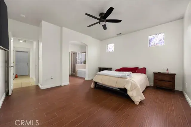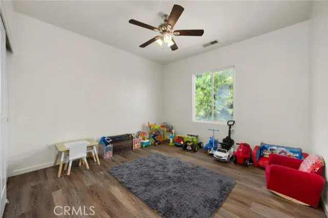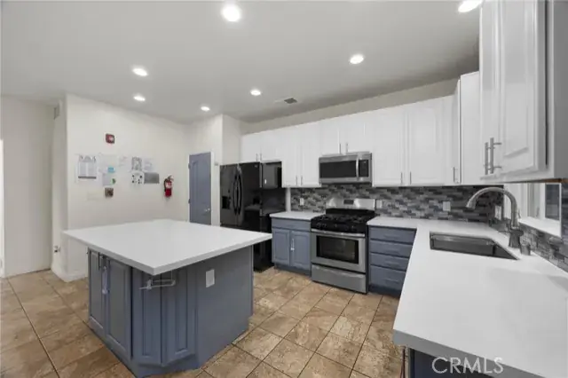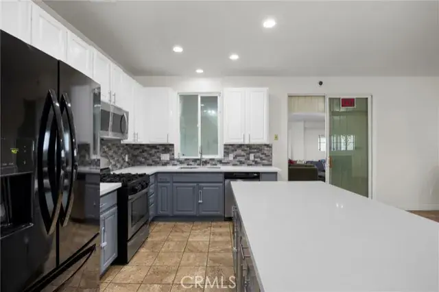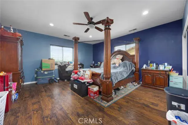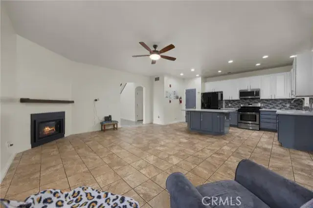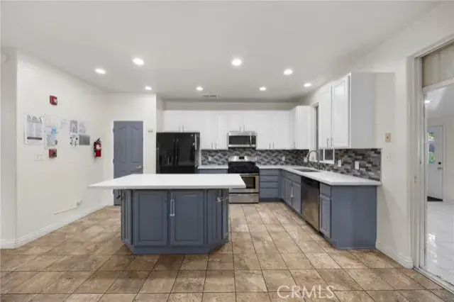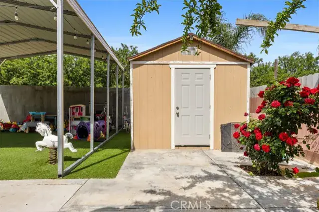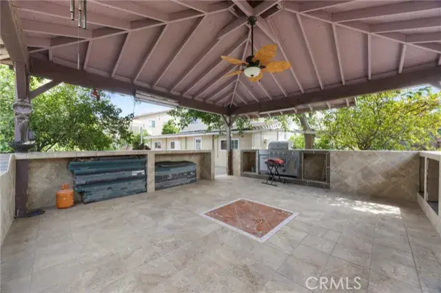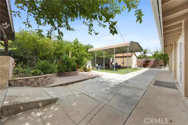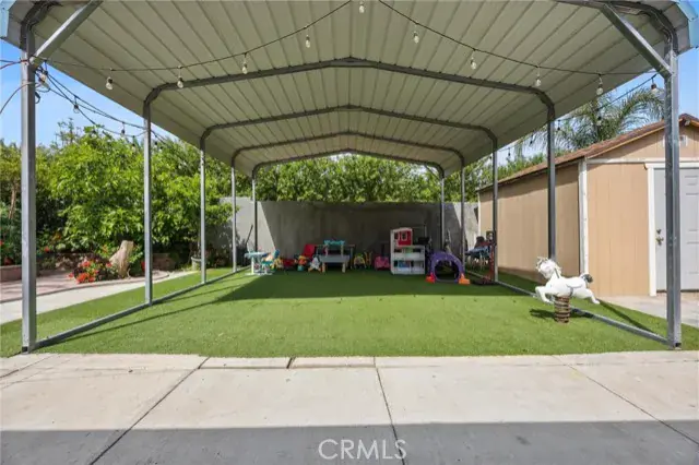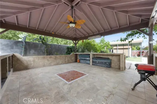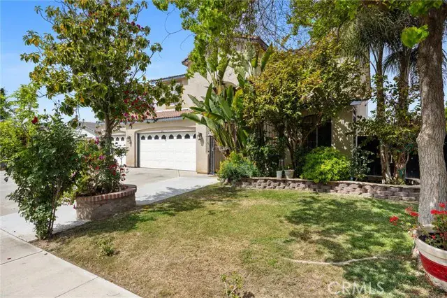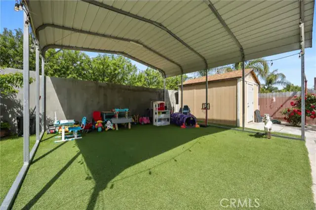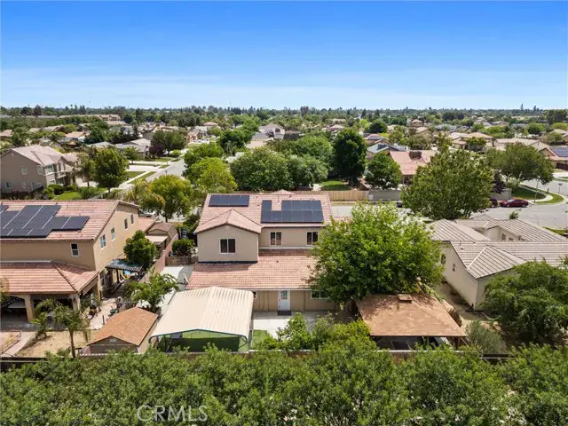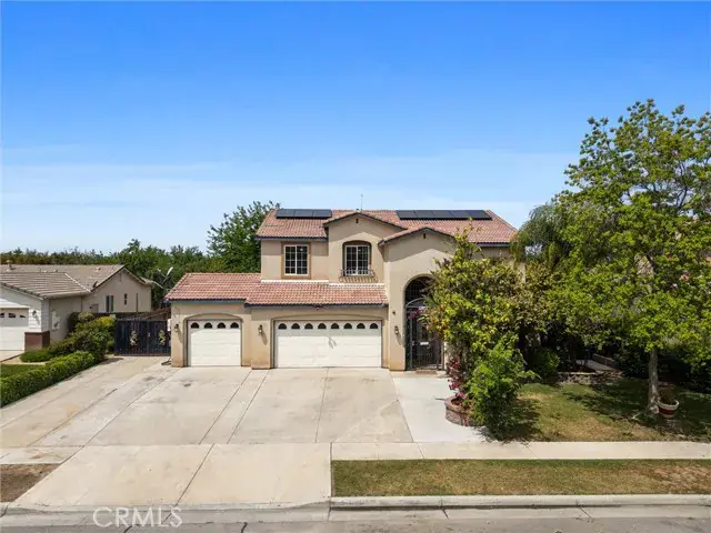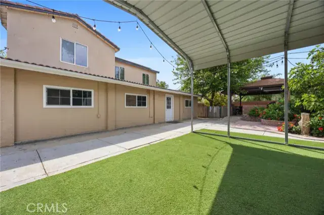 Beautifully upgraded 2-story home with 6 spacious bedrooms and 2.5 baths. The downstairs features tile flooring, cathedral ceilings, ceiling fans throughout. The open concept kitchen is fully remodeled with stainless steel appliances, upgraded countertops, a decorative backsplash, and a walk-in pantry. The expansive backyard is perfect for entertaining with a built-in BBQ, outdoor kitchen, covered patio, and a carport for added shade. There is also a storage unit for additional lawn equipment and or tools. A cinder block wall surrounds the backyard for added privacy. The gated RV access and iron doors on both sides of the home add convenience and security. The enclosed patio room is ideal for a game room, gym, or extra living space. Additional features include a dog run, spacious 3-car garage, 9 surveillance cameras, and energy-saving solar panels that the buyer can assume.