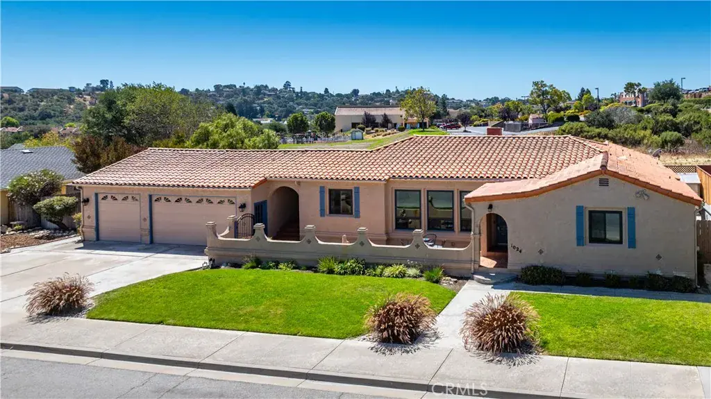 Welcome to 1024 Robin Circle, a beautifully remodeled 3-bedroom, 2.5-bath Spanish-inspired ranch style home in one of East Arroyo Grande’s most desirable neighborhoods. With its timeless red-tile roof, arched entryways, and charming front courtyard with fountain, this home blends Mediterranean charm with modern comforts. Step inside to find open-beamed ceilings, hand-scraped hickory hardwood floors throughout, and a unique two-way fireplace that warms both the living and family rooms. The sunlit dining room opens through French doors to a Saltillo-tiled breezeway, connecting seamlessly to the oversized 3-car garage. The kitchen is both stylish and functional, featuring stainless steel appliances, tile counters, a breakfast bar, recessed lighting, and a built-in desk. Just off the kitchen, the laundry room includes built-in cabinets and direct access to the backyard patio. The sunken family room offers a wet bar — perfect for entertaining — while arched doorways and architectural details enhance the home’s Spanish character. Two bedrooms enjoy adjacent bathrooms for comfort and privacy. Outdoors, the easy-care landscaping with drip irrigation and sprinklers, plus two storage sheds, make maintenance simple. The location is unbeatable: just minutes from the Village of Arroyo Grande with its local shops, restaurants, and farmers markets, while also close to Lopez Lake, top-rated schools, wineries, and the Central Coast’s pristine beaches like Pismo and Shell. Trails, parks, and playgrounds are just around the corner, giving you endless options to enjoy the Arroyo Grande lifestyle.