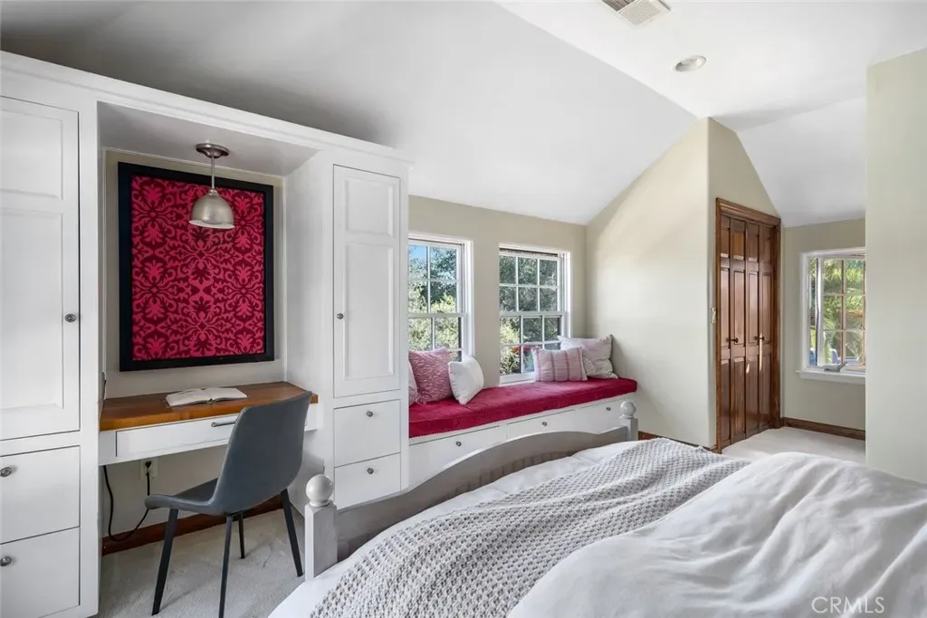 Upstairs, a sitting area opens to two additional bedrooms, each featuring private ensuite baths.