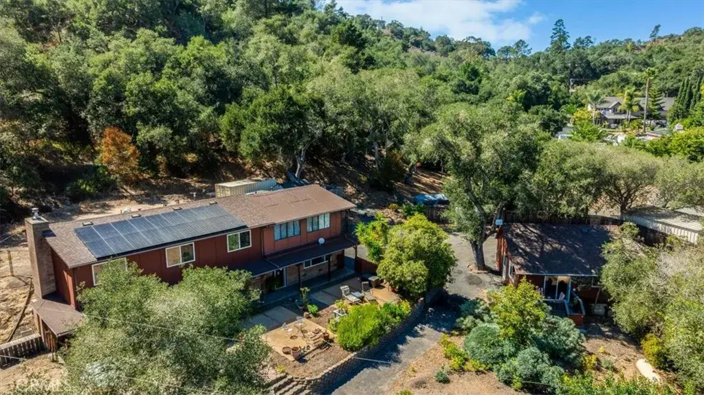 *Please no access to property or parcel without appointment.* Private retreat on over five peaceful acres just off Corbett Canyon Road on scenic Deer Canyon Road, this property offers a rare combination of privacy, income potential with guest units, creekside charm and natural beauty. Formerly home to thriving orchards, the land is now dotted with mature fruit trees and crowned by nature, creating a tranquil and secluded atmosphere ideal for classic country living. A private driveway leads you to the main residence, which has been updated and remodeled nearly throughout. Features include a fireplace, welcoming stairway, kitchen island, and generous upstairs area for recreation. The main home includes four bedrooms, two ¾ baths, and a separate 2-bedroom living space with its own entrance and bath—perfect for extended family, guests, or rental use. Uniquely, the upstairs level of main home can be easily accessed from an upper level of the driveway. In addition, there is a detached 1-bedroom guest unit (576 SF per County of SLO )offering even more flexibility for short- or long-term stays. Currently operating partially as a vacation rental, this property is ready for both full-time living and investment income. A charming footbridge over a seasonal creek adds storybook appeal to the grounds, and a shared well supports both the main and guest units. Additional highlights include a garage, 4 sheds, and the peace of a private road, ideal for those seeking a quiet, rural lifestyle just minutes from town. The solar system serving the property is 7.2kW. This is a one-of-a-kind opportunity to own a private compound in the heart of the Central Coast—whether you’re looking to settle in, invest, or simply enjoy the peace of country living.