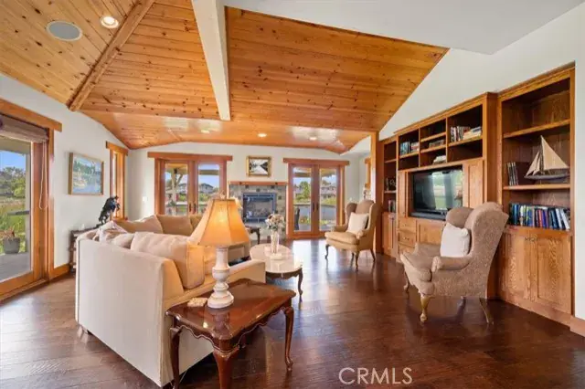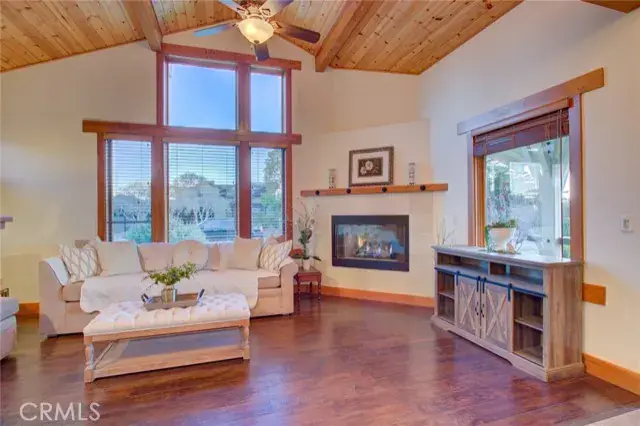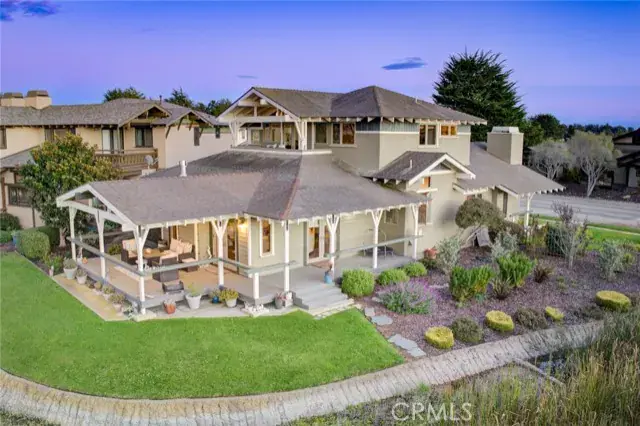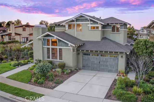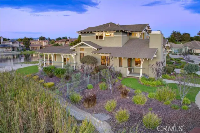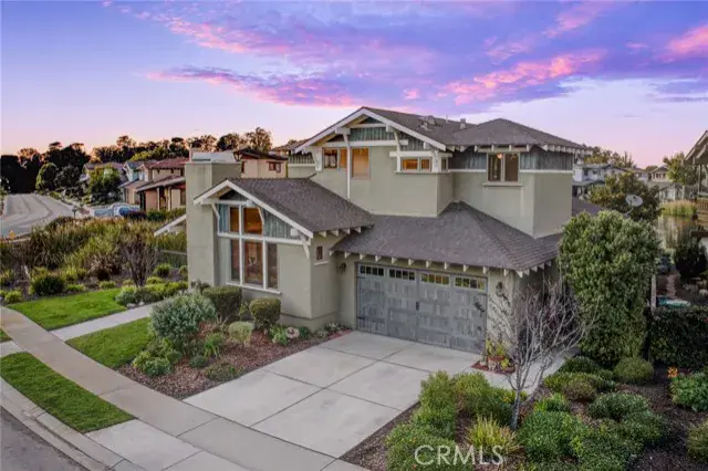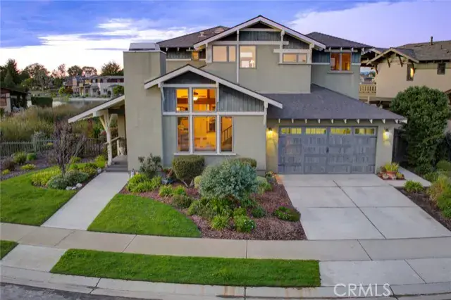 Located in the prestigious gated community of Cypress Ridge, this stunning Craftsman-style home offers true single-level living on the main floor. Set on an a corner lot with peaceful water views, it combines timeless elegance with everyday convenience just minutes from Central Coast beaches and San Luis Obispo. Thoughtfully designed for main-level living, the first floor features all essential spaces—including the spacious primary suite with patio access, a comfortable family room, a formal living and dining room with fireplace, a gourmet kitchen, the laundry room, and direct-access garage. The well-appointed kitchen boasts stainless steel appliances, granite countertops, bar seating, and a wine storage closet, making it ideal for cooking and entertaining. The upper level provides excellent flexibility with two guest suites both complete with en-suite full bathrooms, and a versatile loft, perfect for visitors, hobbies, or a home office. Vaulted pine ceilings, hardwood floors, and abundant natural light enhance the home’s warm, inviting atmosphere, while the wrap-around Trex deck offers the perfect setting to enjoy coastal breeze. Located within a secure gated community, residents can join the Peter Jacobsen–designed golf course, and enjoy scenic Audubon lake, playgrounds, and walking paths—an exceptional combination of refined Craftsman design and effortless Central Coast living.