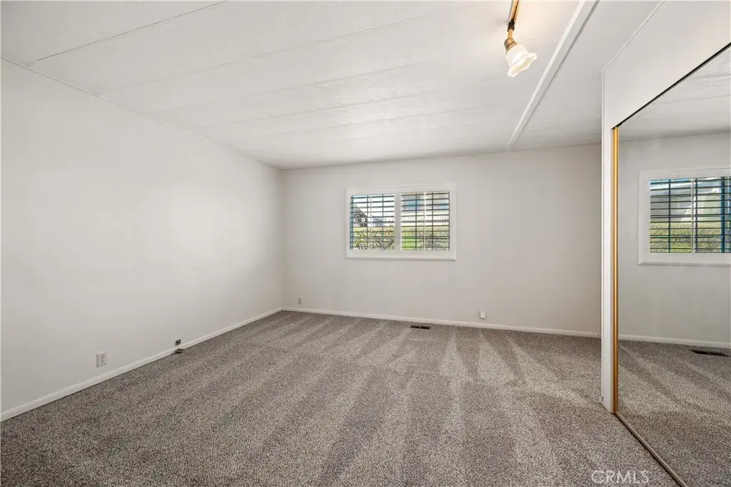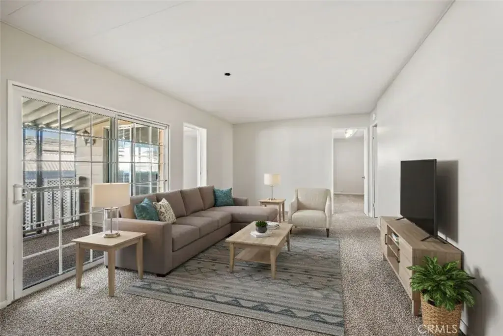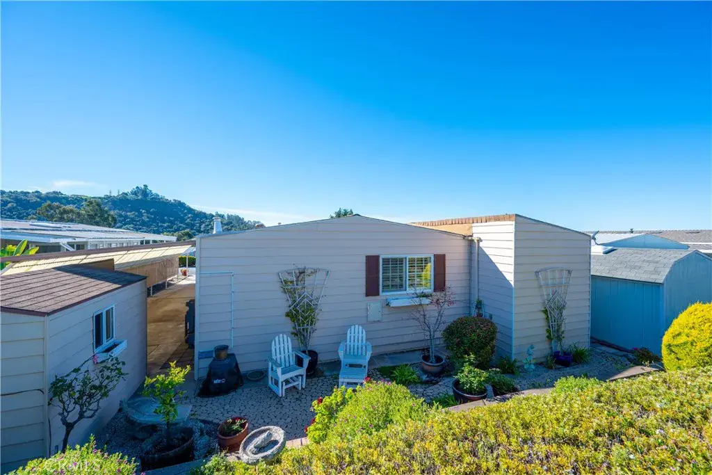 An exceptional opportunity awaits with this spacious 2-bedroom, 2-bathroom manufactured home with a huge bonus room, ideally located in a sought-after Arroyo Grande community. Situated on an approximate 1,736 sq ft lot, this property delivers generous living space and a prime chance for personalization. The bright interior features an open floor plan with expansive living areas, including a sizable living room and a separate family room. Both spaces are finished with neutral paint, plush carpeting, and are illuminated by large windows fitted with classic shutters, ensuring a cheerful and inviting atmosphere. The well-appointed kitchen is defined by classic wood cabinetry offering significant storage, and it flows seamlessly into the dedicated dining area, which boasts an attractive built-in hutch with glass display frontsperfect for entertaining. The two bedrooms are roomy and comfortable. The primary suite features elegant gold-framed mirrored closet doors and a private en-suite bathroom with a classic enclosed shower. The second full bathroom is equally functional, offering extended vanity space and cabinet storage. The bonus room could be used as a bedroom since it has an oversized closet. The homes exterior is complemented by beautiful landscaping, a paver-stone walkway, and steps leading up to a covered, sheltered porch ideal for enjoying the mild climate. Convenient covered carport parking is also included. Combining location, size, and potential – this home is ready for its next chapter … as your new home!