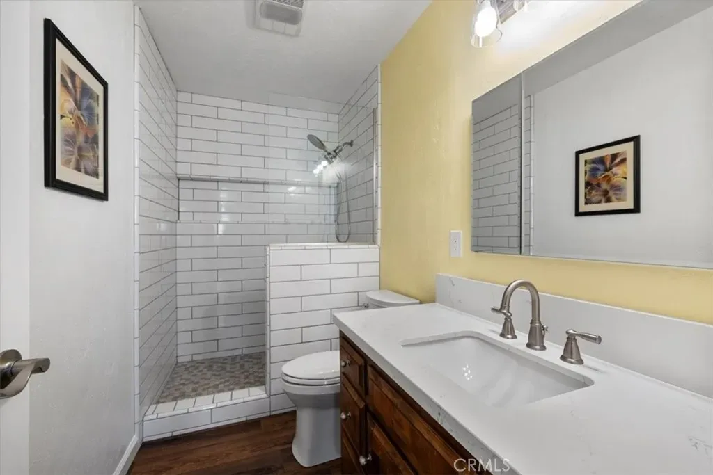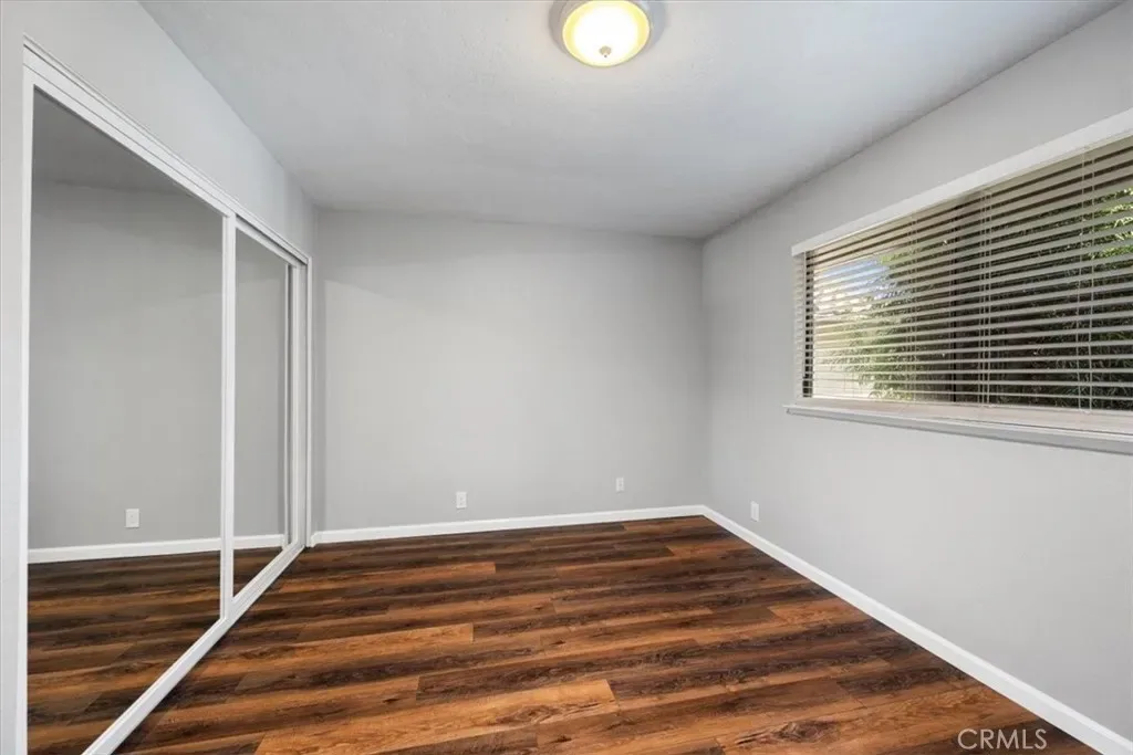 Both bedrooms are generously sized with ample closet space, including updated mirrored doors. Practicality meets luxury with a remodeled bathroom and an extra-long attached single-car garage that includes a convenient laundry area.
