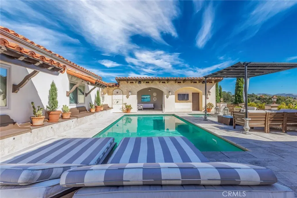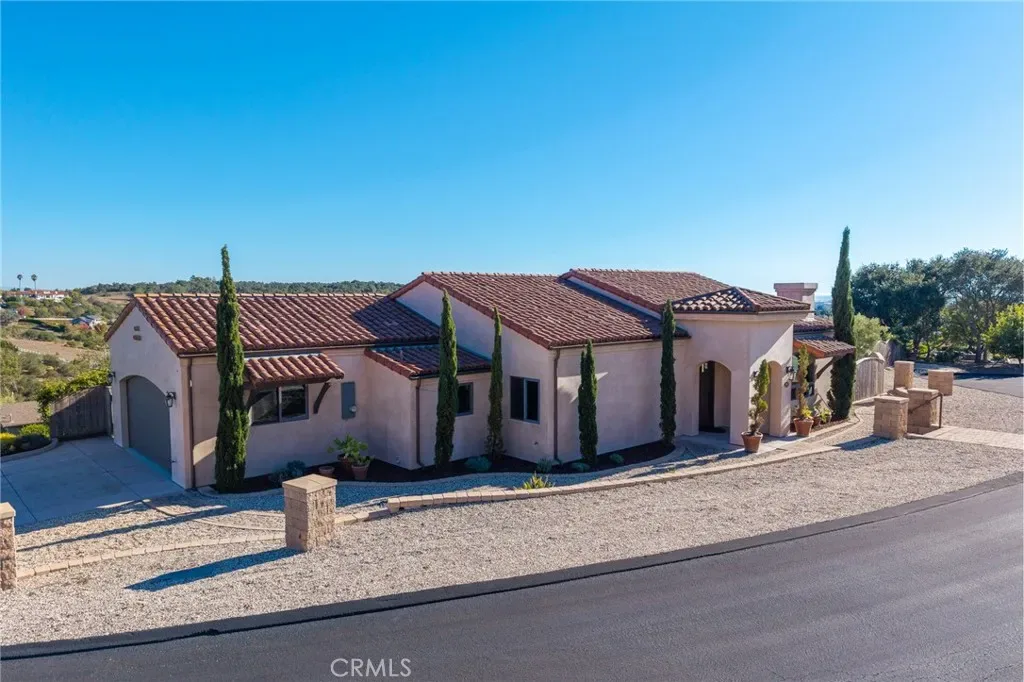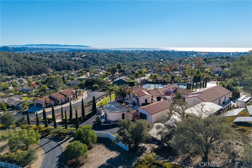 A remarkable blend of luxury, privacy, and versatility awaits in this stunning Arroyo Grande estate. Perfectly situated on 2.8 serene acres, this exceptional property spans approximately 7,840 sq. ft. of living space and includes a magnificent 5-bedroom, 7-bath main residence plus a 1,200 sq. ft. 2-bedroom, 2-bath ADU. Inside the main home, expansive open-concept living spaces flow seamlessly from the grand entry and formal living room to the dining area and chef-inspired kitchen—complete with top-of-the-line appliances, an indoor BBQ, granite countertops, and a large island with custom cabinetry. The elegant primary suite features dual walk-in closets, a spa-style bathroom, and an adjoining sitting area. Each additional bedroom is a private ensuite, beautifully designed for comfort and style. Thoughtfully designed for both entertaining and everyday living, the home also includes a family room, private office, game room, media room with home theater, exercise room, and an impressive temperature-controlled wine cellar. The 5-car garage is complemented by four additional spaces currently housing recreational vehicles, plus a detached 2-car pull-through garage used as a spacious workshop. Outdoor living is resort-inspired, with a pool, spa, outdoor kitchen, fireplace, pizza oven, and a pool house complete with living space, kitchen, and bathroom. Enjoy tennis, pickleball, or basketball on the courts, or simply relax among the multiple patios and sitting areas surrounded by lush, professional landscaping, hardscape, and a small vineyard. The stylish ADU Casita offers its own 2-car garage and has been a highly desirable vacation rental, featuring an open floor plan with a bright living room, full kitchen, and two large ensuite bedrooms. This gated solar-powered estate captures panoramic views of the surrounding hills and California coastline, offering the ultimate in luxury living. Just minutes from the charming Arroyo Grande Village, San Luis Obispo, and the Central Coast’s renowned beaches, dining, and wineries—this extraordinary property is both an entertainer’s paradise and a private retreat with the bonus of the separate income-producing Casita!