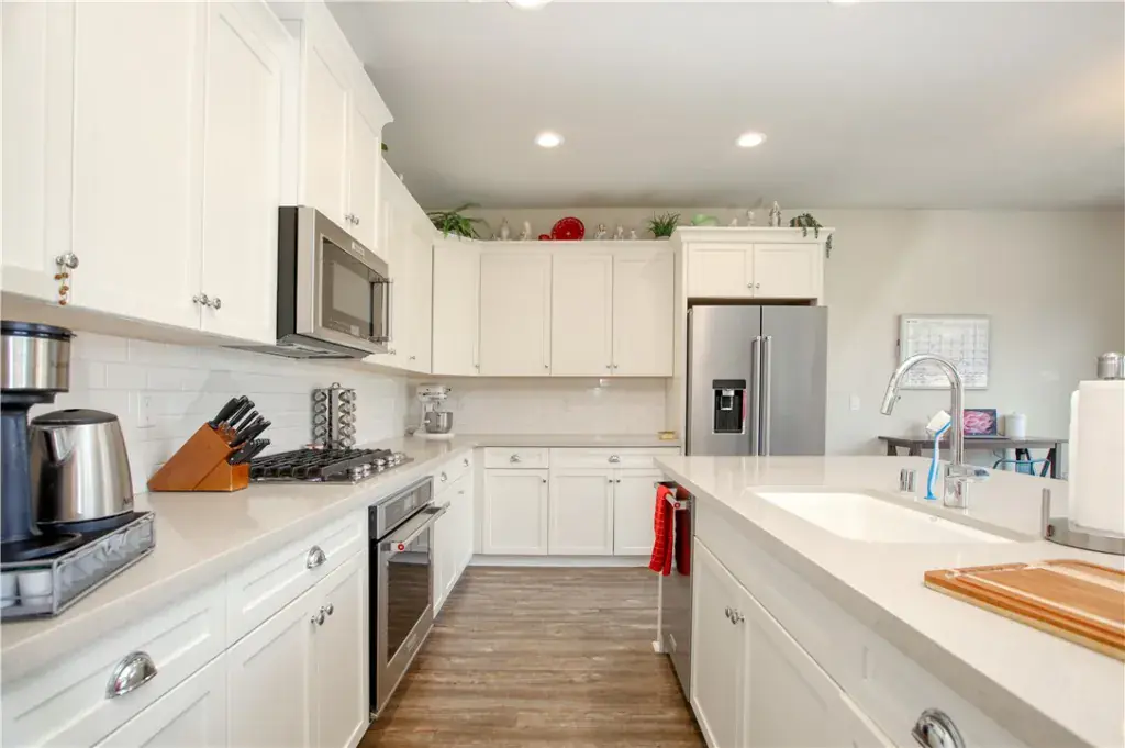 Welcome to 519 Leedham Place, a beautifully designed single-story home in the sought-after Creekstone at the Village neighborhood, just a short walk to the restaurants, shops, and entertainment in the Village of Arroyo Grande. This 1,873 square foot home features 3 bedrooms and 2 bathrooms with an open-concept layout that seamlessly connects the kitchen, great room, and dining area. The flexible floor plan includes a large separate living room that can serve as a formal space, home office, or be converted to a 4th bedroom per the builder’s original floor plan option. The gourmet kitchen includes a large island with sink, quartz countertops, and a spacious pantry. The primary suite offers an en suite bathroom with separate soaking tub and shower, double sink vanities, and a generous walk-in closet. Two additional bedrooms and a second full bathroom complete the interior living space. Additional features include durable wood flooring throughout, recessed lighting, a dedicated laundry room with storage cabinets, tankless water heater, and an attached two-car garage. The low-maintenance backyard features synthetic turf and a paver patio. This like-new home offers single-story living in a prime Arroyo Grande location.