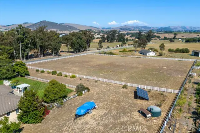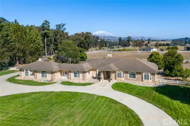 Set on five picturesque acres in the heart of Arroyo Grande, this custom Greg Nester estate blends timeless craftsmanship with modern luxury, creating a rare sanctuary on California’s Central Coast. With approximately 3,152 square feet of thoughtfully designed living space, the residence offers four bedrooms and three baths in a private setting where horses are welcome. Inside, the home is designed for both relaxed living and sophisticated entertaining. Two expansive living areas are enhanced by built-in cabinetry, a wet bar, and a four-unit entertainment center. The gourmet island kitchen features Bosch appliances, a Jenn-Air cooktop, a walk-in pantry, and ample cabinetry, while the adjoining dining room is perfectly suited for hosting. The master suite offers a spa-inspired retreat with a walk-in shower, complemented by ceiling fans throughout the great room and bedrooms for year-round comfort. A dedicated laundry/mud room with a shower adds both convenience and versatility. Technology and efficiency are integrated, featuring owned solar, Cat 5 wiring, surround sound, a whole-house fan, an intercom, and a full suite of security features, including cameras, motion lights, and a burglar alarm system. Golden State Water Company services the home, while a private well and 5,000-gallon storage tank support the landscaped grounds, complete with sprinklers and drip irrigation. Outdoor living is equally compelling, with a vinyl-fenced perimeter, gated dog run, storage shed, and fire ring for gatherings under the stars. A 4-car garage, plus RV hookups with a dump station, ensures ample parking and storage for both daily living and recreational pursuits. A rare offering of space, privacy, and refinement, 175 Michael Lane captures the essence of Central Coast living—where lifestyle, luxury, and land come together in perfect harmony.