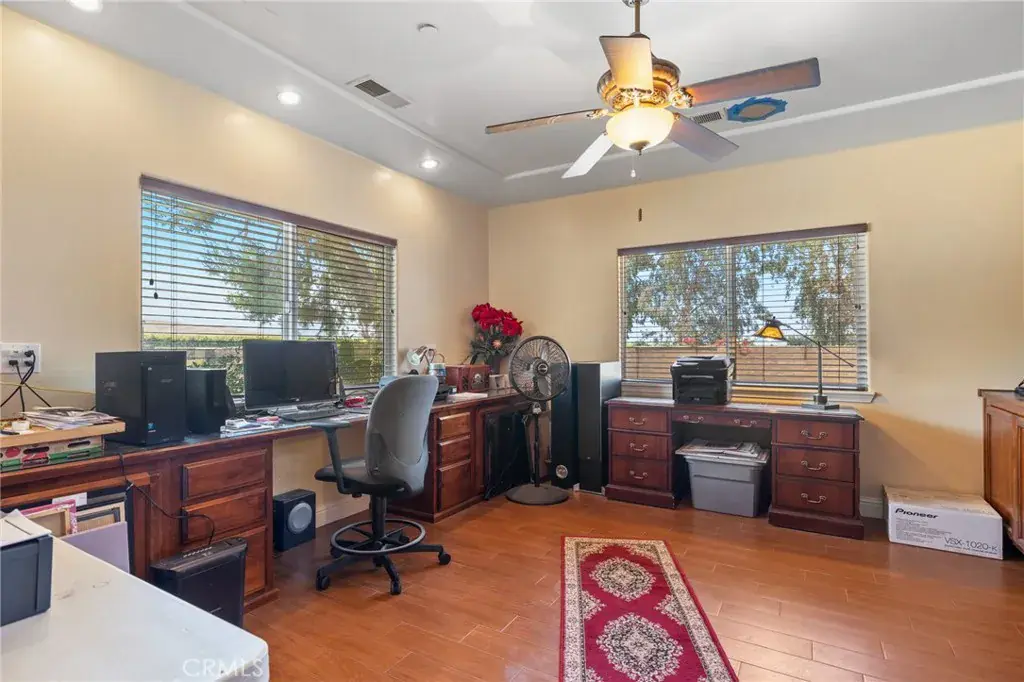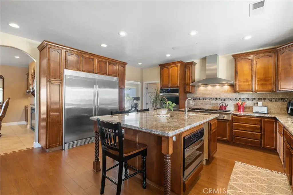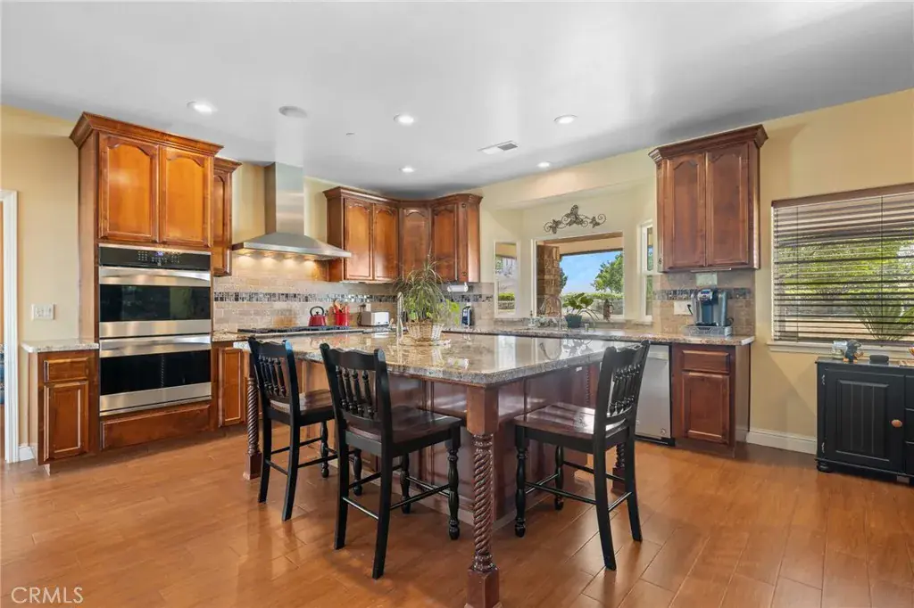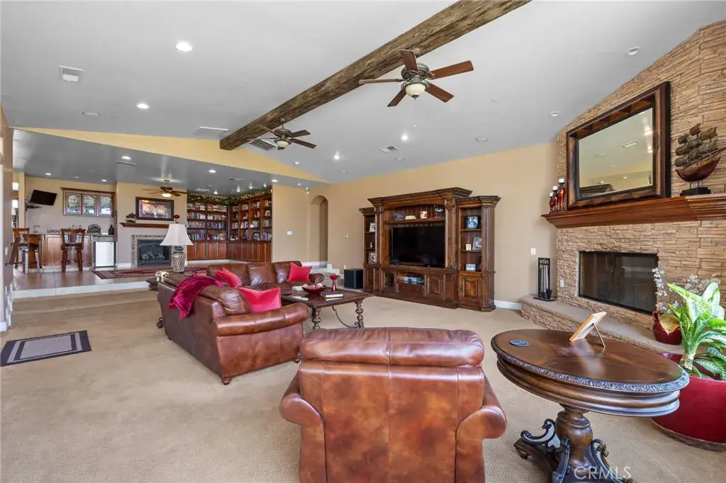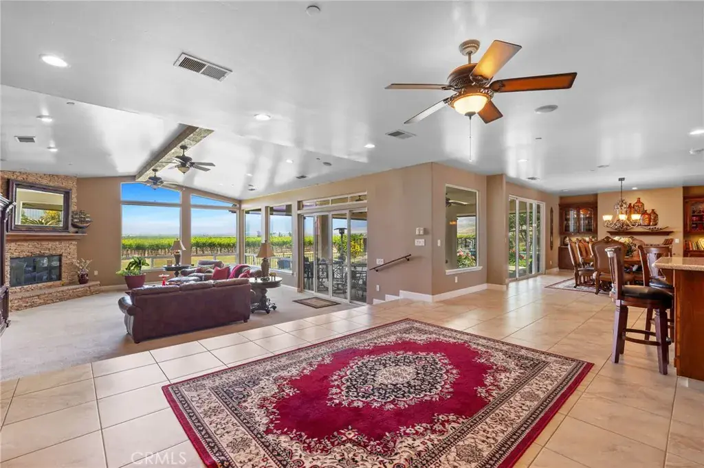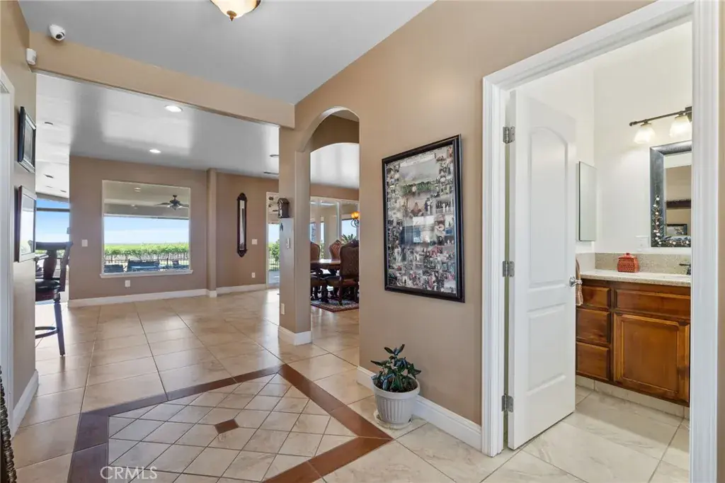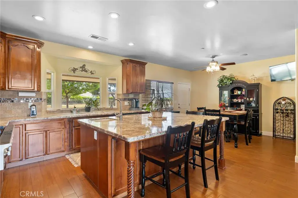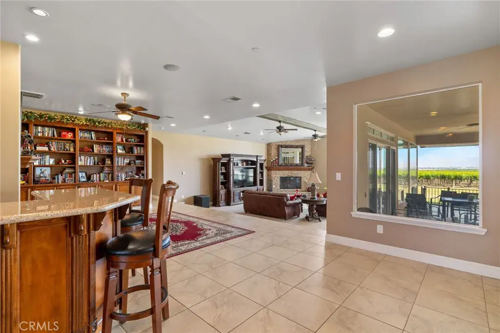 This ranch-style home sits on 2.27 acres at the foot of the Tehachapi Mountains. Nestled amongst grape vineyards with spectacular views of the mountains, the valley and the city lights of Arvin. The open concept living room, dining room, library and wet bar provide ample area for entertaining. The chef’s kitchen features granite countertops, center island, Electrolux gas stovetop, double ovens, built-in Kenmore Elite refrigerator/freezer and walk-in pantry. There is also a bonus/exercise room. The main house is 4,977 sf and has 3 en-suite bedrooms with walk-in closets, and 5.5 bathrooms. The primary en-suite also has a fireplace, dressing area and an office. Additional fireplaces in the living room, library, dining room, and bonus room. A covered porch spans the front of the house. Out back is a covered patio and pool. The ADU, connected by the carport, is 577 sf and has one bedroom, one bath, living room and kitchenette. There is a 3,000 square foot shop building with roll-up doors.