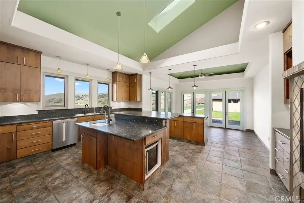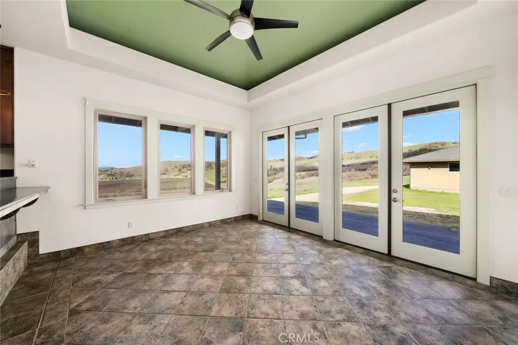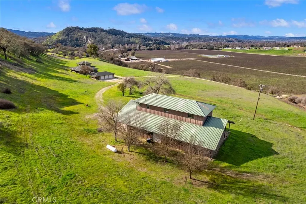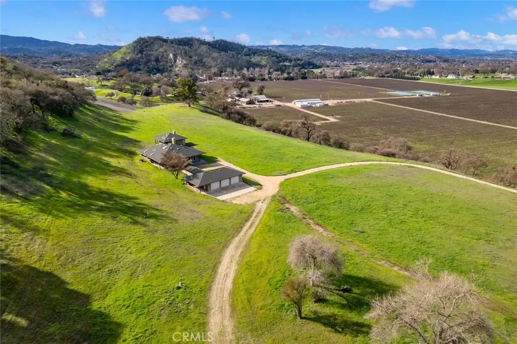 Perched atop 22 acres with sweeping vineyard, mountain, and oak-studded views, this custom-built 4 bedroom, 5 bath, 3,100 sq ft home features a large barn with a private studio, workshop, and horse stalls! Just minutes from Atascadero with easy access to Highways 41 and 101, the home offers three fireplaces, including a wood-burning stove in the chef’s kitchen. The kitchen is equipped with a JennAir refrigerator, double ovens, a six-burner range with hood and warming drawer, walk-in pantry, large island with secondary sink and wine cooler, Dacor dishwasher, and trash compactor. The main living areas feature hardwood floors, a gas fireplace with a marble hearth, and French doors opening to a covered wrap around porch. The first level includes three bedrooms with walk-in closets, full baths, custom built-ins, and outdoor access. Upstairs, the primary suite offers two balconies, a large custom closet, and a bath with a dual-sided fireplace and walk-in shower. The home also includes a basement ideal for a wine cellar or bonus room, a detached 3-car garage with a half bath and a custom fabricated outdoor pet enclosure. The property is horse and livestock-ready with its 3000 sq ft barn with 14 foot custom fabricated doors, five stalls, tack room, shop, laundry area, and a private studio upstairs, perfect for guests, a caretaker, or rental income. This is a truly one-of-a-kind property you won’t want to miss! Information not verified.