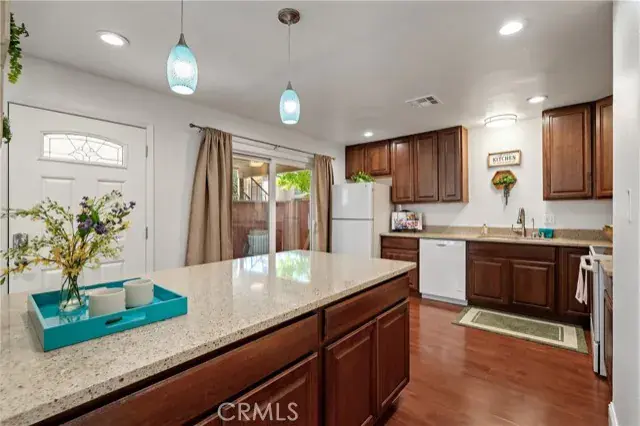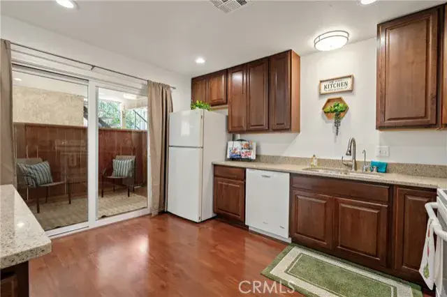 Enjoy easy living in this beautifully updated ground-floor Oak Glen Condominium, offering 640 sq ft of thoughtfully designed open concept space with 1 bedroom, 1 bathroom, and two inviting patios. As you arrive, a fenced and covered front patio offers a private outdoor retreat—ideal for morning coffee or evening relaxation—and connects directly to the kitchen via sliding glass doors. A second sliding glass door in the living room opens to another patio with lovely views, bringing the outdoors in. Inside, the home features fresh, modern upgrades throughout, including new luxury vinyl plank flooring, plush carpeting, new paint, and a fully remodeled kitchen with granite countertops, rich wood cabinetry, and sleek finishes. The spacious bedroom provides a quiet place to unwind and is conveniently located next to the updated bathroom, which features a contemporary vanity and clean, modern design. Additional perks include ample interior storage, an assigned parking space just steps from the unit, and a central location within walking distance to schools, Stadium Park hiking trails, and Atascadero’s vibrant downtown. With quick freeway access, commuting or exploring the Central Coast is a breeze.
