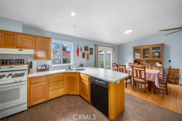 A long, private driveway leads to a welcoming front entry deck and generous parking areas. Inside, you’ll find a bright, open floor plan with vaulted ceilings and a seamless flow between the great room, dining area, breakfast bar, and additional living space—perfect for both everyday living and entertaining. The spacious kitchen overlooks the backyard and includes a pantry and adjacent laundry room for added convenience.