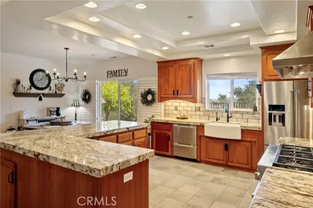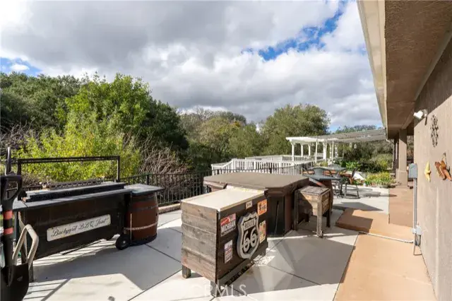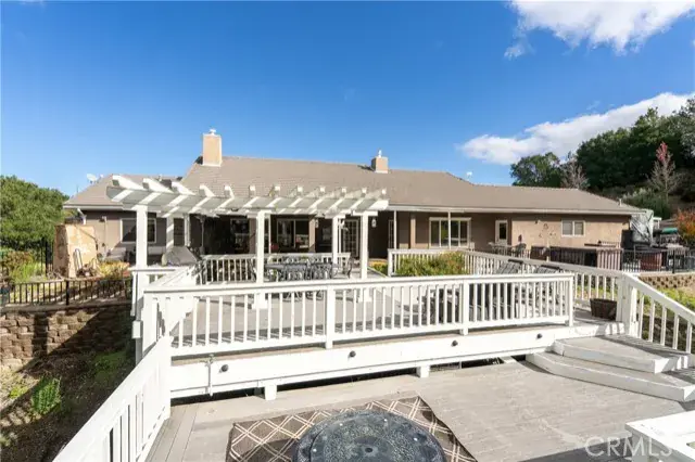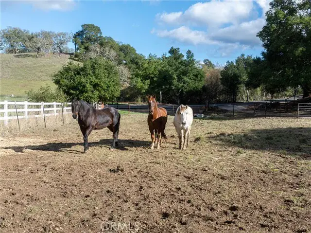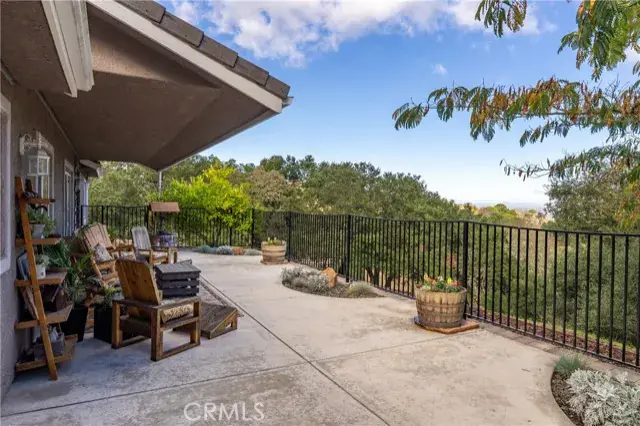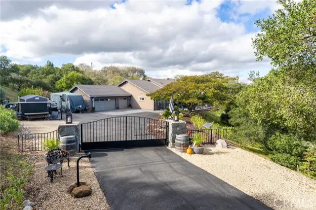 Welcome to this exceptional 3 bedroom, 2 bathroom executive home offering 2363 sf of refined living space on two separate APNs totaling 3.76 acres in the prestigious 3F Meadows community. As you approach through the automatic gated entrance, the property unfolds beautifully, with the home perfectly perched atop the hill to capture sweeping, unobstructed views. A charming east-facing, covered patio welcomes you—an ideal spot to enjoy peaceful mornings. Step inside and you’re greeted by rich hardwood floors that flow through much of the main living area. The spacious living room impresses with vaulted ceilings, built-in cherry cabinetry and a cozy gas fireplace. The dining area is enhanced by a large picture window that frames the stunning vistas beyond. The gourmet kitchen is a true standout, featuring new granite countertops, a stylish tiled backsplash and ample space to entertain with ease. Retreat to the massive primary suite, thoughtfully designed as a calming sanctuary. It offers plantation shutters, a French door to the backyard and a gas fireplace for added ambiance. The luxurious ensuite bath includes a soaking tub, a walk-in shower with dual shower heads and a generous walk-in closet complete with organizers. Two guest bedrooms and a full guest bath are privately situated on the opposite side of the home. Outside, you’ll find an expansive covered patio with lighting and wiring for sound—perfect for year-round enjoyment. The serene setting includes a tranquil water feature, an outdoor fireplace and a large deck ideal for relaxing or entertaining. Additional amenities include RV parking with full hookups and an enclosed chicken coop. Below the home, you’ll find an additional parcel of land with its own separate entrance. It’s currently used as horse pasture but could easily accommodate 4H projects or other four-legged friends. If you need more space, the area also offers the potential to build a home, workshop or whatever suits your needs. Please check with the City of Atascadero for details. This spectacular property blends comfort, privacy and scenic beauty—come experience all that 3F Meadows has to offer. Please review the Virtual Tour for additional photos and information.