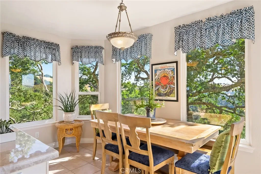Discover 14600 El Monte, a retreat where architectural character meets a serene landscape. Set on 5.42± acres in the hills of Atascadero, this 3 Bedroom, 2 bath, 2,222± sqft home is positioned +/- 6 miles from Highway 101, Downtown Atascadero, and Highway 41 offering service to Morro Bay. Built in 2002, this thoughtfully designed home emphasizes natural light and scenic eastern views of the rolling hills with custom architectural details throughout. As you enter the home, you will find the living room is anchored by picture windows framing the outside nature, with direct access to a balcony for fresh air and morning light. The dining area overlooks a shaded front garden, creating a calm backdrop for everyday meals or gatherings. As you wander to the kitchen, you will find a refreshed look with Quartzite counters and backsplash, center island, abundant cabinetry (including glass-front accents) and a breakfast nook surrounded by windows looking out to native oaks. The adjacent family room offers elevated ceilings, a wood-burning stove and generous natural light. Each of the guest bedrooms include ceiling fans for added comfort. The primary suite provides a sense of retreat with its own stone patio, walk-in closet and ensuite bath featuring a walk-in shower, soaking tub with large windows as a backdrop and dual vanities. Additional practical features include a dedicated laundry room with a soaking basin and storage and a ‘Quiet Cool’ whole house fan. There is a detached 2-car garage with a separate finished room— that may be suited for workspace, hobby area or storage with built-in cabinets. As you step outside, you may discover the true beauty of this property, the spacious tiered patios provide opportunities for outdoor entertaining and are complemented by drought-tolerant and succulent plants. Stone pathways meander around the home, adding to its charm. A property that combines acreage, functional living spaces and proximity to town amenities—ready to support a range of lifestyles on the Central Coast.
