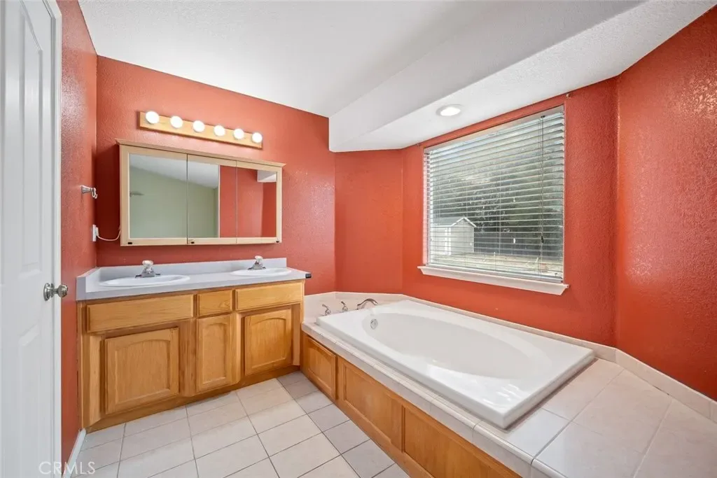 The spacious primary suite includes a walk-in closet and a private ensuite bath with dual sink vanity, soaking tub, walk-in shower, and separate water closet. French doors provide direct access to the backyard, creating a serene indoor-outdoor connection. Two additional bedrooms and a second full bathroom with dual sink vanity and linen storage complete this thoughtfully designed, function-friendly floor plan.