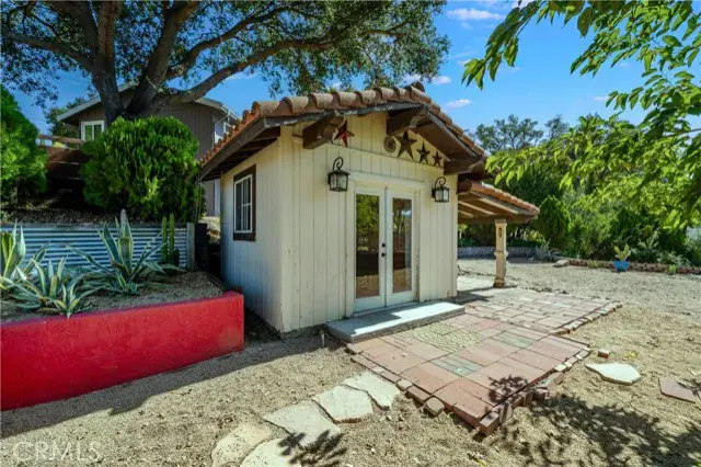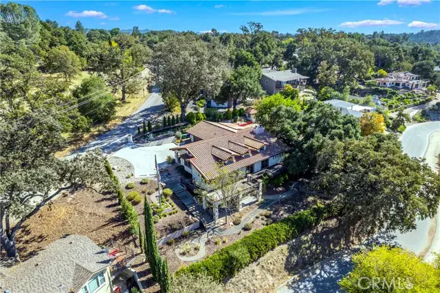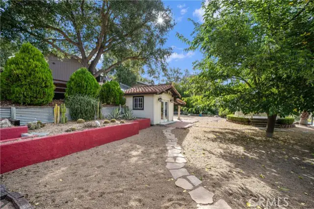 The backyard feels like a private park, shaded by a majestic live oak and complete with a gazebo, multiple sitting areas, and peaceful views of Atascadero Lake. A detached art studio out back offers endless versatility as a home office, creative workspace, or playroom.