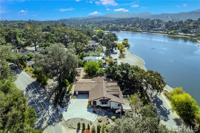SELLER REVIEWING OFFERS 11/1. Nestled on over half an acre next to Atascadero Lake, this Spanish Revival residence blends timeless architecture with a serene, park-like setting. From the moment you arrive, the handcrafted wood-carved front door and terracotta-tiled entry set the tone for the home’s rich character and classic charm.