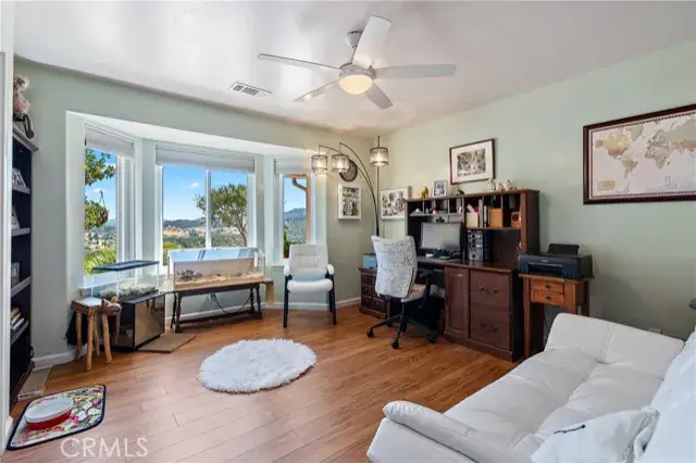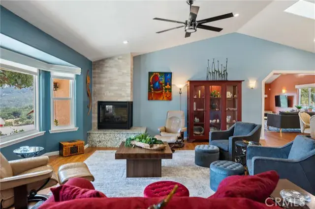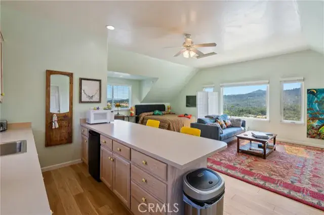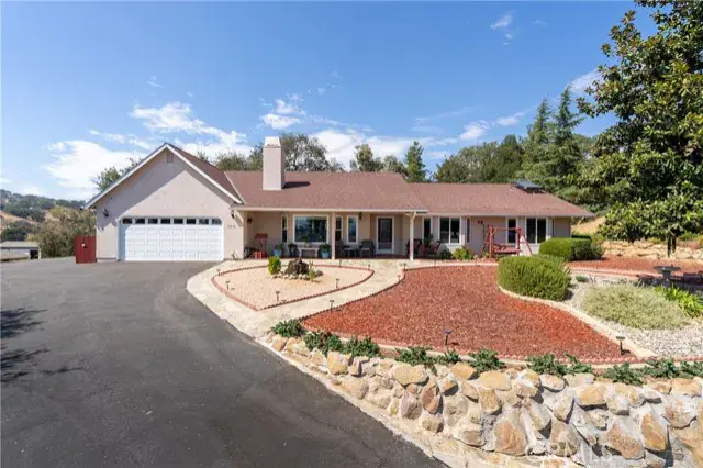 Welcome to this beautifully updated 3 bedroom, 2.5 bathroom home plus studio on ~ 5 gated acres, offering privacy, panoramic views and exceptional functionality. With 2140 sf of stylish living space in the main home and a 672 sf detached studio above the garage, this property is ideal for multi-generational living, guest space or rental income. Step inside to find luxury vinyl plank flooring throughout, leading you into a bright living room with vaulted ceilings, a cozy gas fireplace and large windows that perfectly frame the sweeping views. The custom kitchen is a showstopper with quartz countertops, soft-close cabinetry and pull-out drawers—perfect for both daily life and entertaining. The family room connects to the immaculate attached garage, which includes cabinets, a sink and epoxy floors for a clean, finished feel. On the opposite side of the home, you’ll find two guest bedrooms and the generous primary suite, featuring vaulted ceilings, a walk-in closet and access to the back patio. The ensuite bathroom includes a dual sink vanity and a beautiful walk-in shower. Outside, enjoy peaceful evenings on the covered back porch, or explore the fully fenced property, complete with multiple sheds, animal shelters and a chicken coop—ideal for 4H projects or animal lovers. The detached 2-car garage includes a 672 sf studio apartment above with a spacious kitchenette, bathroom and large windows offering stunning views. Perfect for guests, extended family or potential rental income. Additional features include owned solar, newer roof, windows and interior paint. Privacy and space to roam, this property truly offers an elevated lifestyle with room to grow, create and enjoy country living without compromising modern comfort. Don’t let this one pass you by—schedule your private tour today! Review the Virtual Tour for additional photos and information.