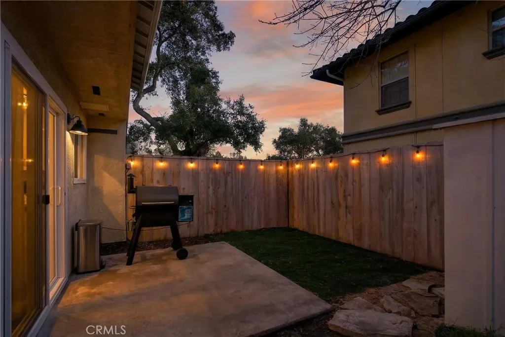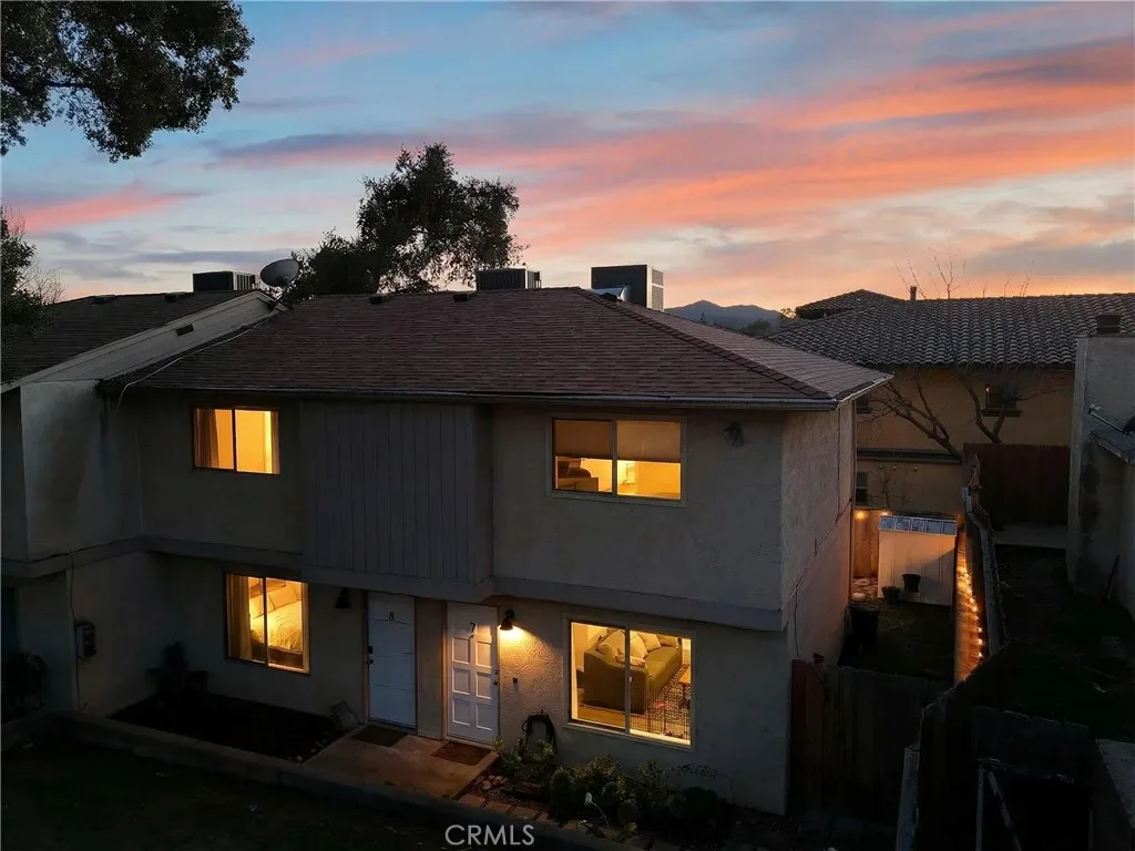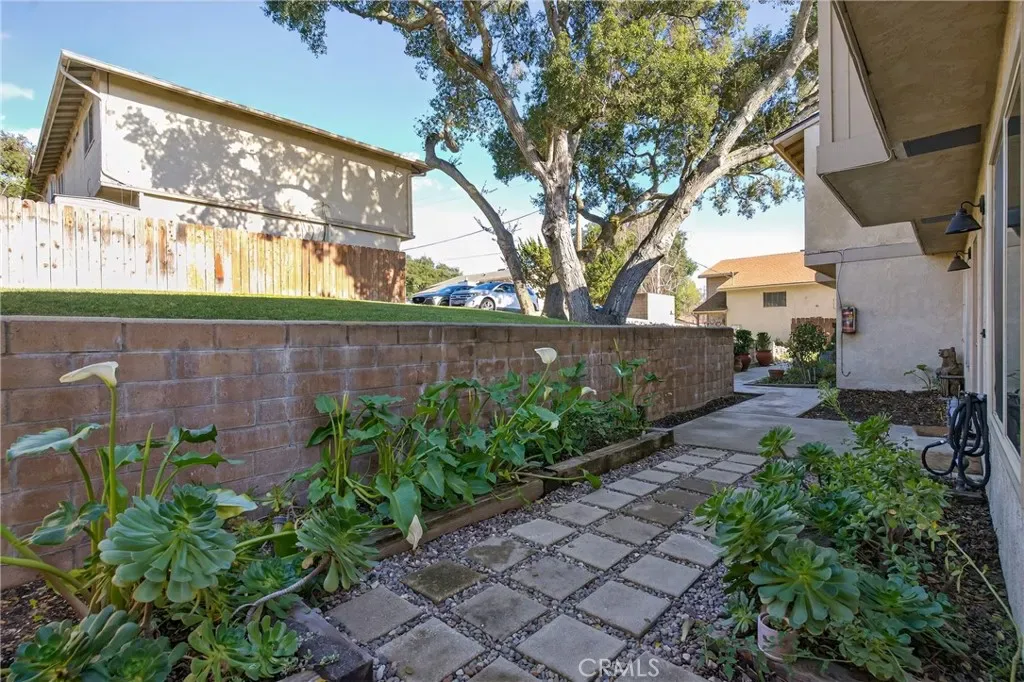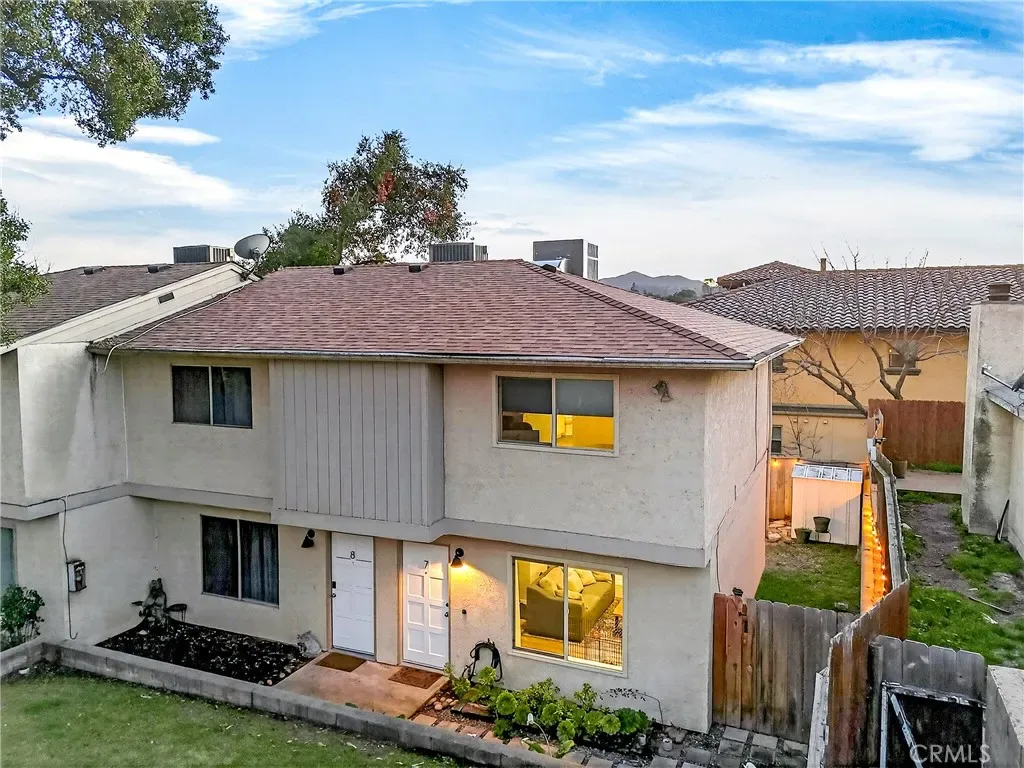 Welcome to 9780 Las Lomas #7 in Atascadero — a thoughtfully upgraded 2-bedroom, 2-bathroom home tucked into the quiet back corner of an intimate community, offering rare privacy with only one shared wall and peaceful greenbelt views from the living room and primary bedroom. Extensively improved with both style and substance, major updates include central heating and air (installed 2022, serviced 2024), dual-pane vinyl windows and sliding door, updated plumbing, new plugs and switches, a new roof in 2024, and full fumigation completed in 2025 — providing confidence for years to come. Natural light fills the open living space, enhanced by recessed lighting and modern finishes. The kitchen shines with white shaker cabinetry featuring soft-close doors and drawers, quartz countertops, a black granite sink, designer backsplash, stainless steel Samsung appliances, custom pantries, and a charming coffee bar for added storage and functionality. Upstairs, two generously sized bedrooms offer remote-controlled ceiling fans, mirrored closet doors, and blackout shades. A Nest thermostat adds smart-home convenience. The primary bathroom is beautifully renovated with an oversized soaking tub, tiled shower surround, updated exhaust fan with integrated light, and contemporary fixtures. A second bathroom provides flexibility for guests or everyday living. Outdoor space is equally impressive. One of the larger lots in the community, the property features four front flower beds, a newly added gate, and a private wraparound yard with low-maintenance turf. A storage shed is included, and Edison string lighting creates a warm setting for relaxing or entertaining. Additional conveniences include remote-controlled blinds throughout (excluding the kitchen), two assigned parking spaces (one standard, one parallel), and a nearby communal laundry facility with three washers and three dryers offering both app and coin operation (approximately 29-minute wash and 45-minute dry cycles; usage fees apply). The HOA, approximately $500/month as of January, covers water, trash, sewer, exterior maintenance (roof, fencing, gutters, pest control and tenting if needed), landscaping, exterior insurance, and monthly cleaning of the laundry facility — allowing for low-maintenance living. Private, extensively upgraded, and thoughtfully maintained — this is a rare opportunity to own a beautifully improved home in a desirable Atascadero location.