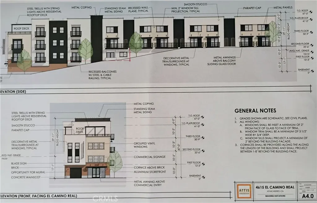 Building plans being completed and construction to start in middle of 2026. Conditional Use Permit approved for 16 units and commercial/retail space. Commercial lot in developing business zone in Atascadero. Soils report, Topo plan and easement description are available. Attached are plans for 3 story building.