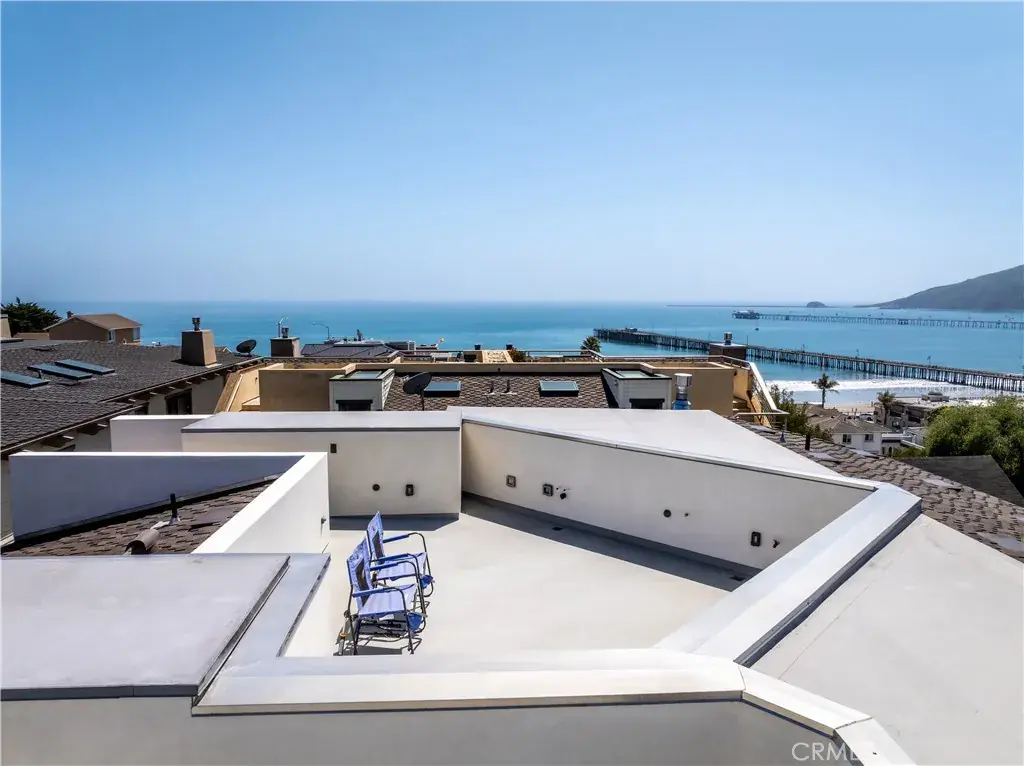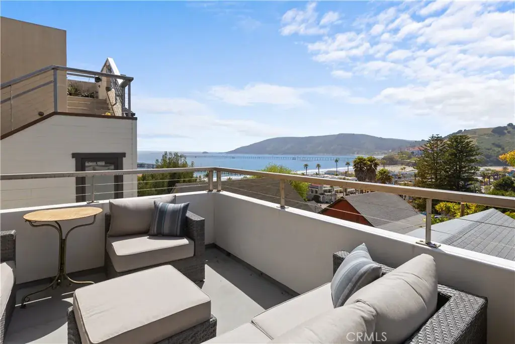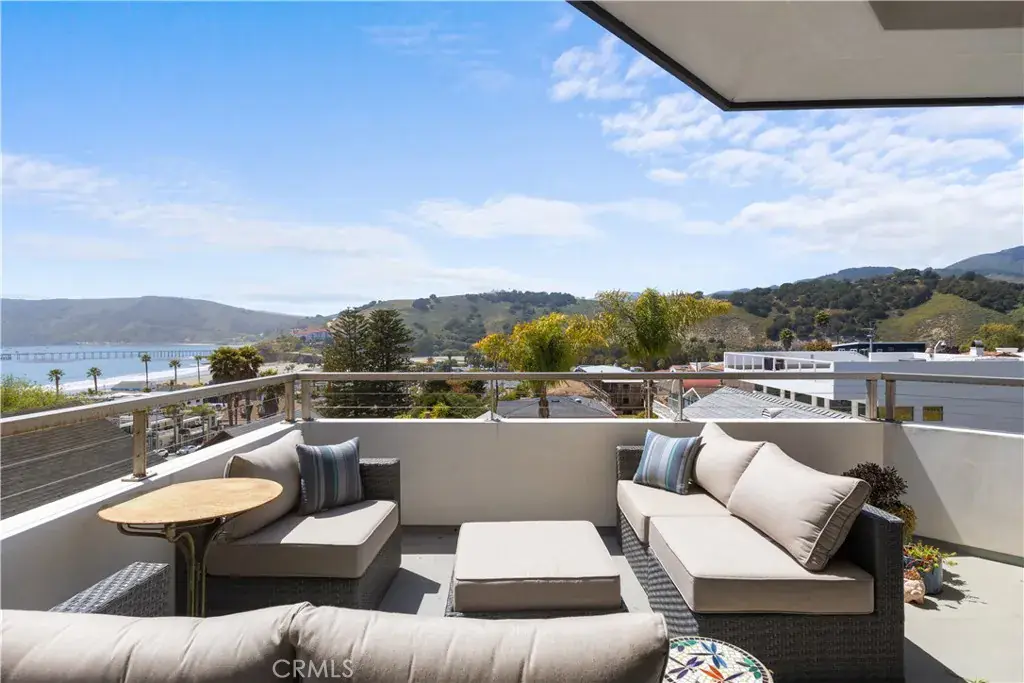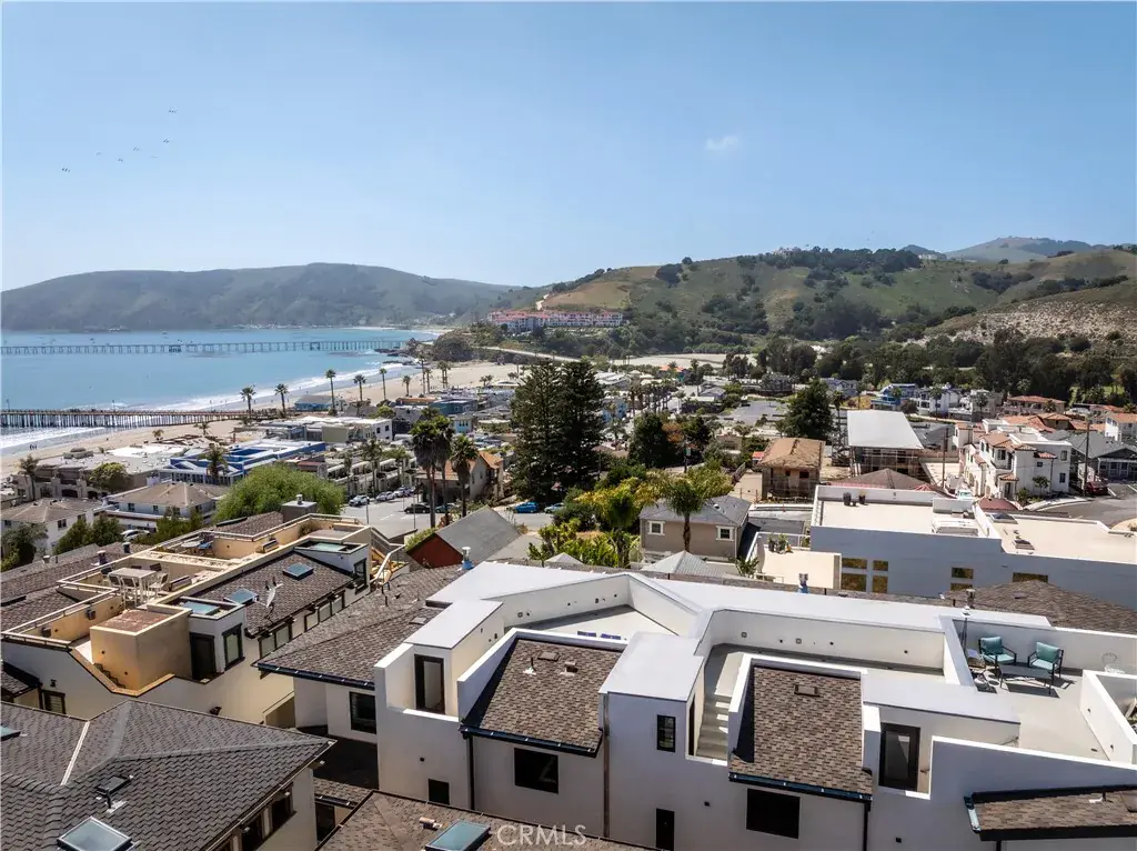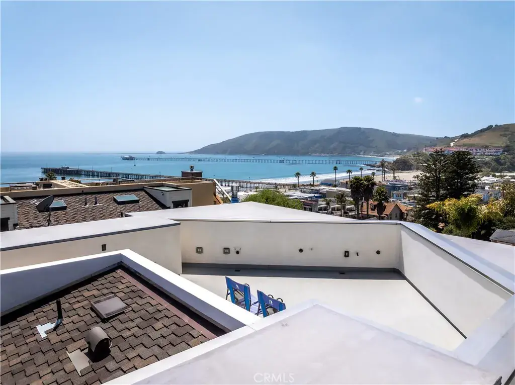 Panoramic Ocean View! Positioned to capture the best views in downtown Avila Beach, this custom two-bedroom, two-bath retreat is the epitome of refined California Modern design. Offering a seamless blend of luxury and location, this townhome frames mesmerizing views of the historical pier, rolling mountains, and of course, the Great Blue Pacific. The interior is a welcoming palette of European Oak floors, smooth textured walls, and accents of stylish quartz and chic tile.The great room is home to a panoramic view of the Avila Coastline through a 12-foot trifold door with a unique slate fireplace. The chef’s kitchen boasts commercial grade appliances, timeless white shaker cabinets, and beautiful quartz countertops and offer space to create whatever suits your taste. The ground floor has a comfortable layout with master bedroom offering a spa like bathroom experience, and large walk in closet. The adjoining deck gives an outdoor place to enjoy the sights and sounds of the ocean. Fall asleep to the sounds of waves crashing and live the best vibe and weather on the Central Coast. If you need a 360 view, the rooftop perch is rated for a hot tub and plumb ready for an outdoor kitchen offering you flexibility with fulfilling your dream. This home comes completely turnkey with all furnishings as shown, and active vacation license which is professionally managed. With a strong rental history, you can enjoy the best of both worlds: Enjoy it when you want, and enjoy the rare opportunity of consistent income when you’re away!