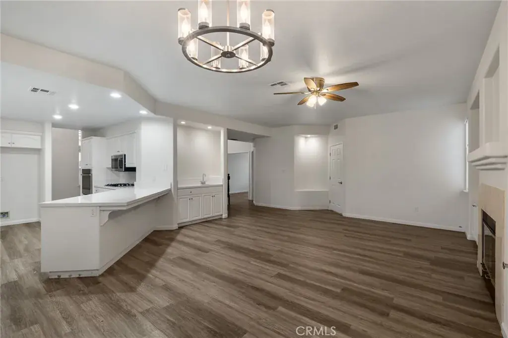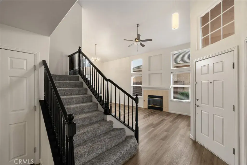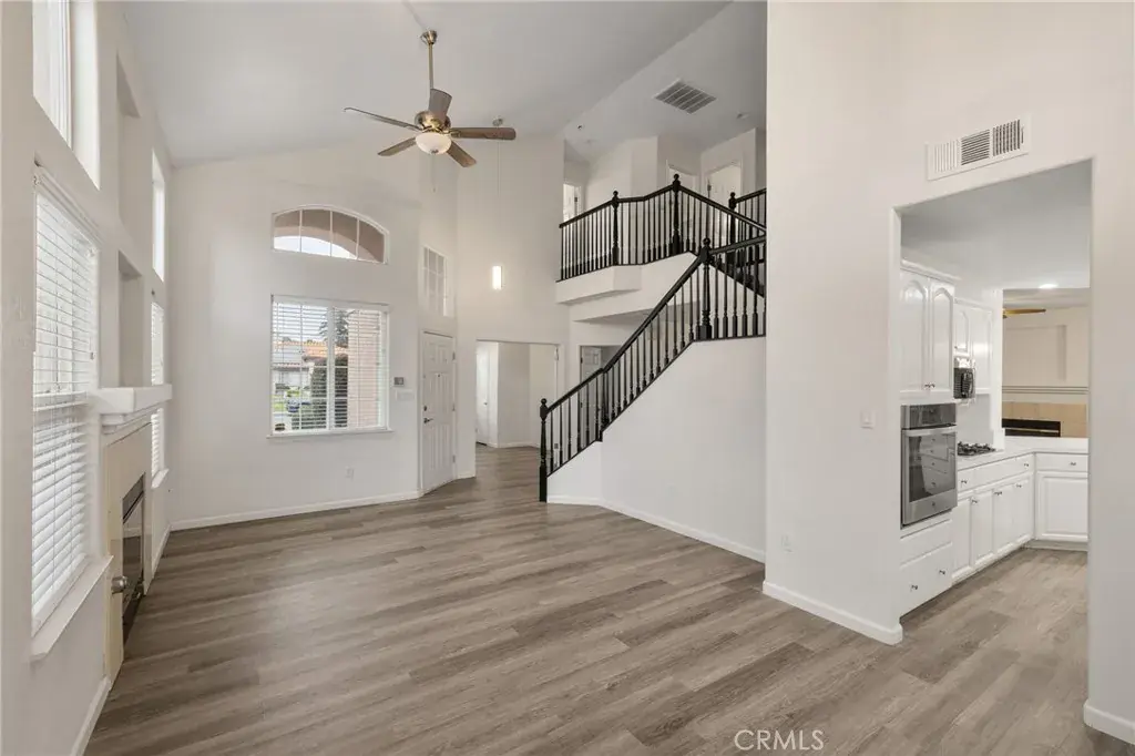Beautifully updated 4-bedroom, 3-bath home featuring soaring ceilings, wood-look flooring, and a flowing open layout ideal for everyday living and entertaining. The formal living room offers a cozy fireplace, while the spacious family room includes a second fireplace and a stylish wet bar with easy kitchen access. The bright kitchen features white cabinetry, quartz countertops, and a large breakfast bar. A convenient downstairs bedroom with nearby bath is perfect for guests or multigenerational living. Upstairs, the spacious primary suite boasts a dual-sided fireplace shared with a spa-like bathroom featuring a soaking tub, separate shower, and dual sinks. The private backyard includes a built-in BBQ grill, pergola-style covered patio with ceiling fan, and mature trees for added privacy. A 3-car garage completes this move-in-ready home located in the desirable Stockdale High School district, close to shopping, dining, and everyday conveniences.