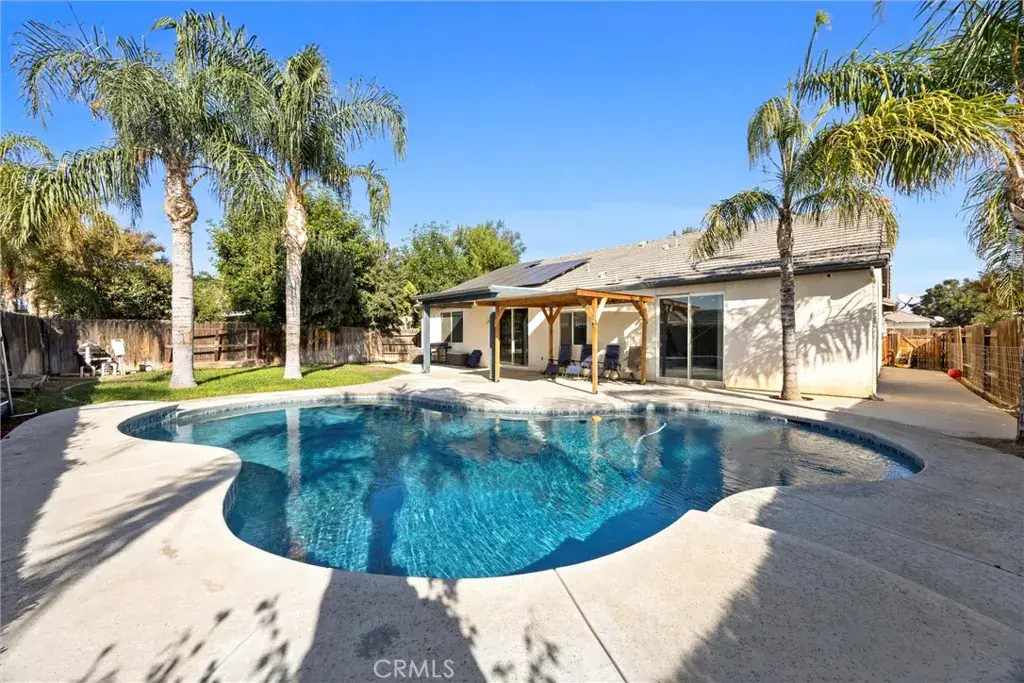 Enjoy energy savings with owned solar and brand-new inverters—no lease transfers, just pure savings. The entertainer’s backyard showcases a newly resurfaced pool with fresh plaster, ideal for year-round California living. The versatile office provides the perfect work-from-home setup or study space.